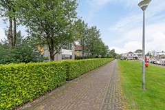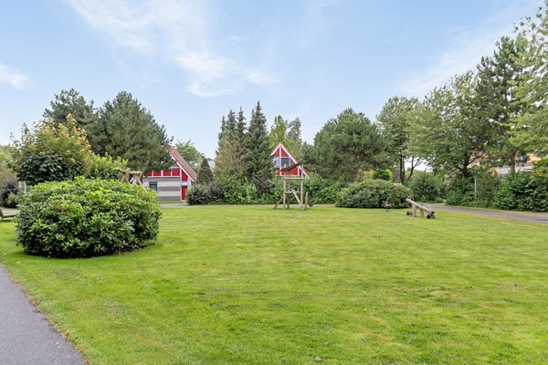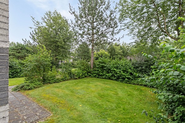 Aan de voorzijde van de woning is ruimte om twee auto’s te parkeren op eigen terrein. De achtertuin, grenzend aan het schildmeer, is ruim opgezet en voorzien van een terras. De tuin in omsloten door een heg, wat zorgt voor veel privacy.