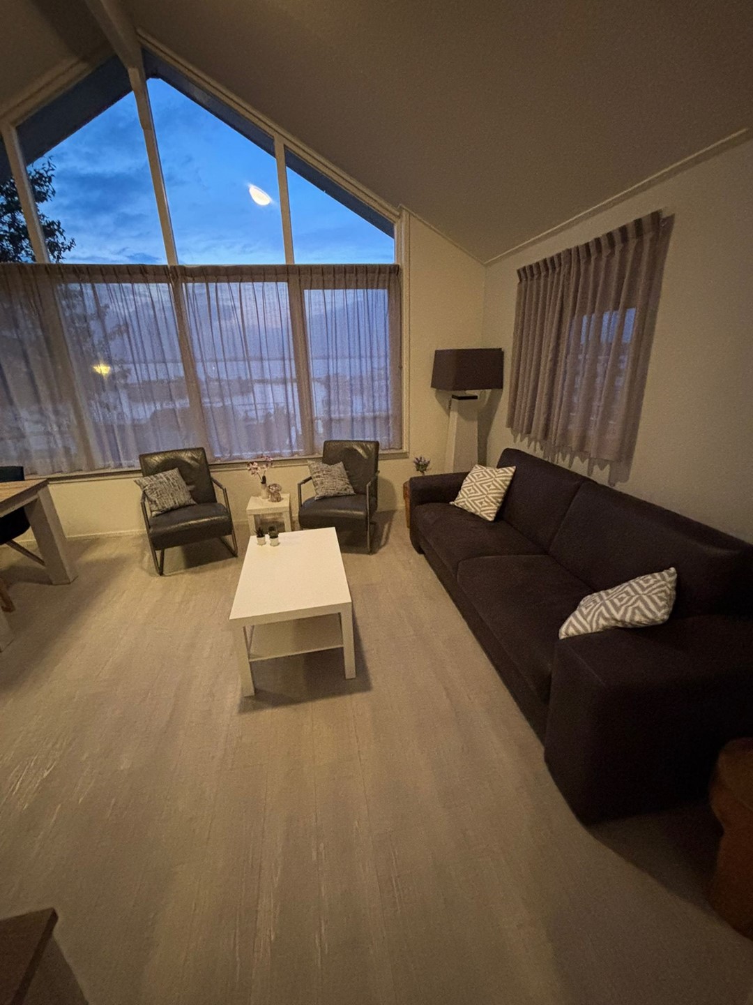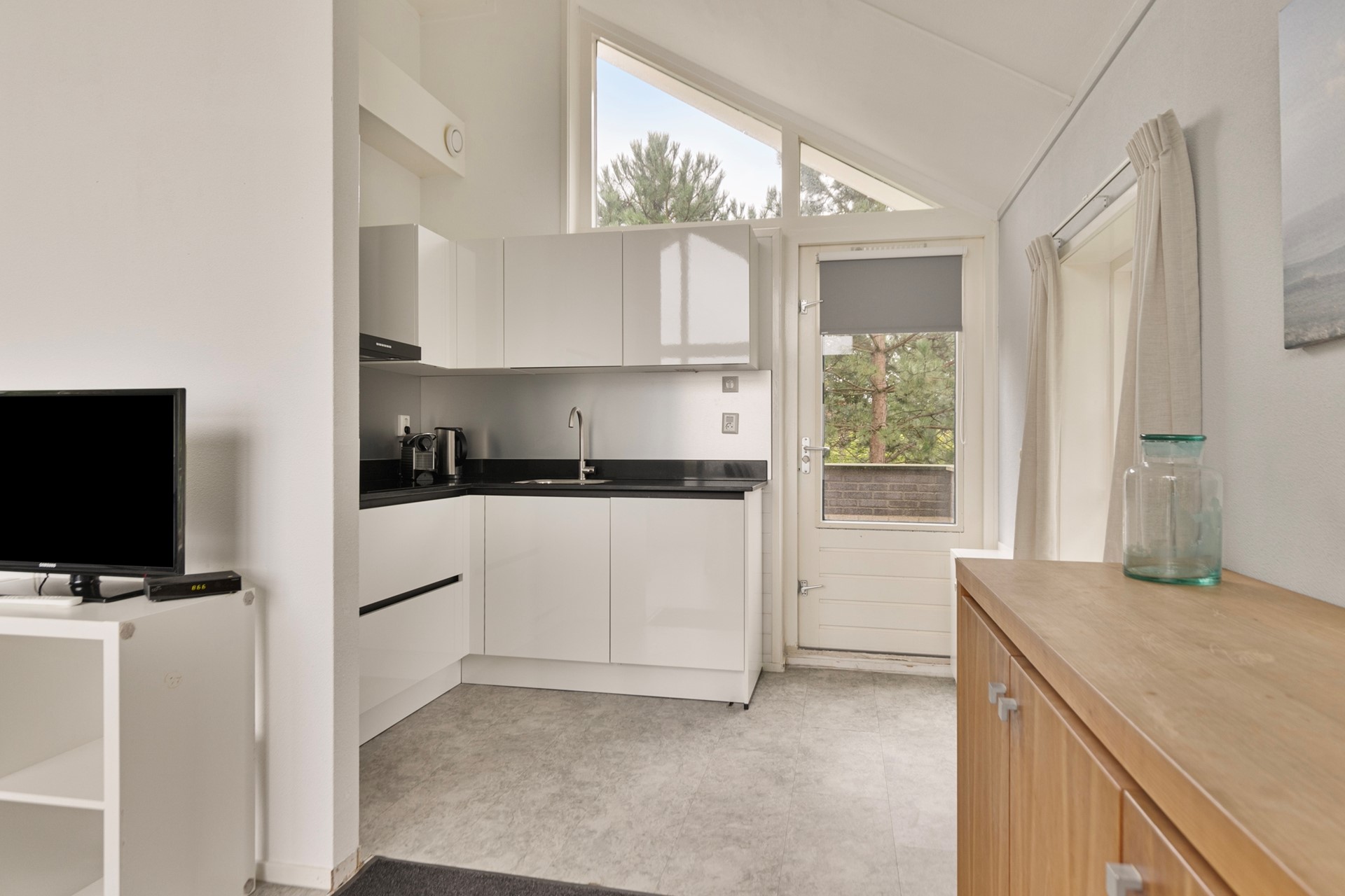 De woonkamer is dankzij de grote raampartijen heerlijk licht en biedt een weids uitzicht over het meer. De open keuken is modern en van alle gemakken voorzien, zoals een koelkast vaatwasser, combi-oven, inductiekookplaat en afzuigkap.