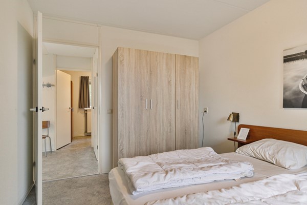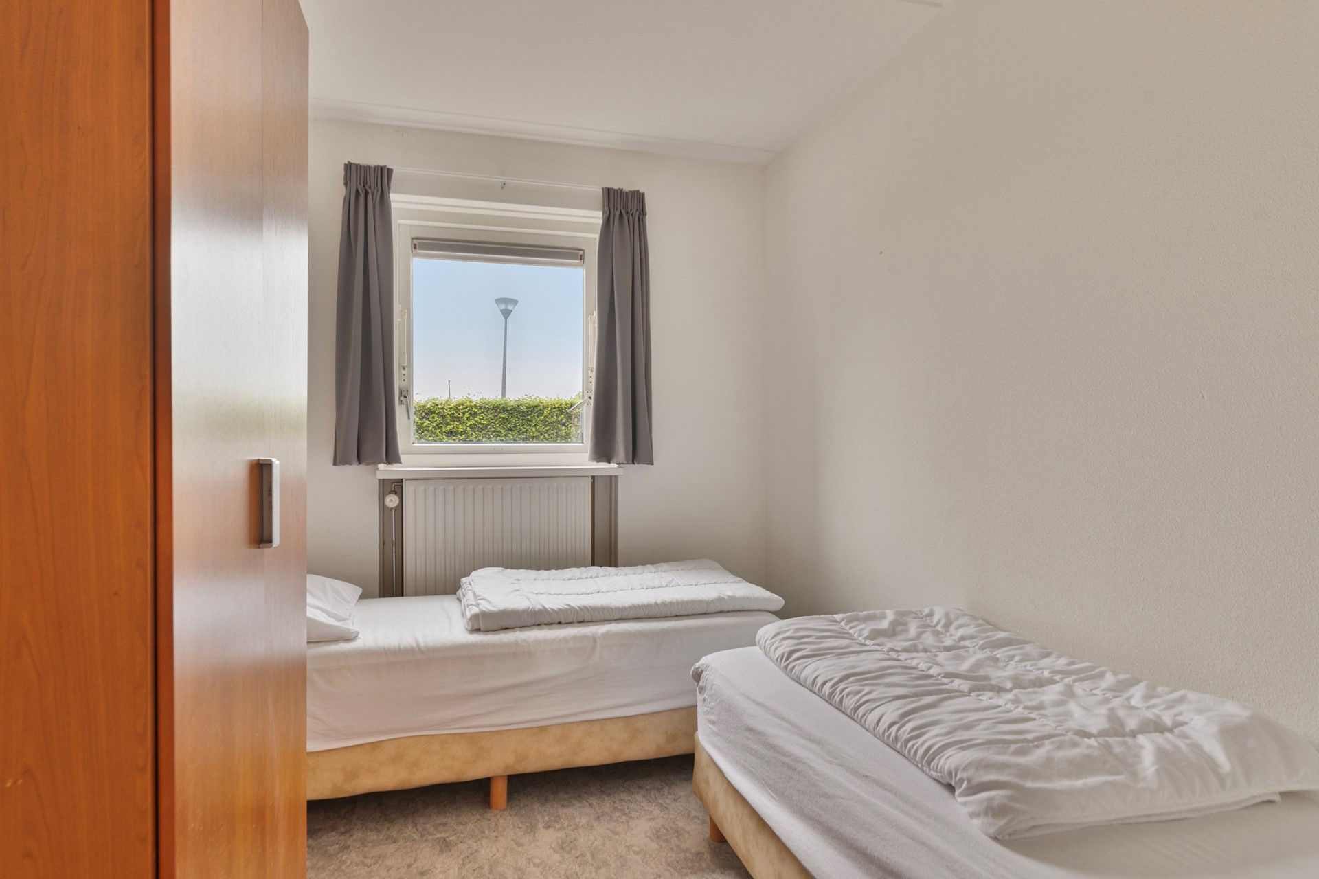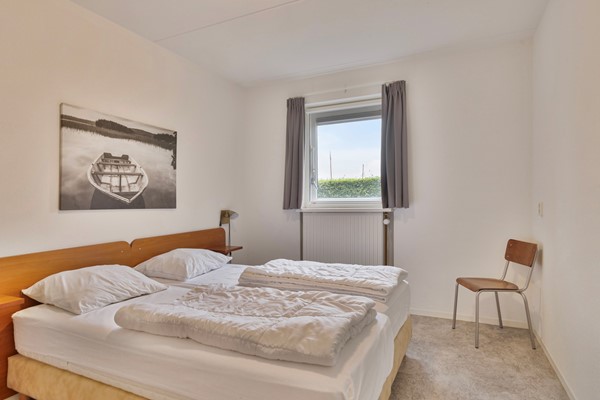 Wat deze woning bijzonder maakt, is de indeling waarbij de slaapkamers en badkamer zich op de begane grond bevinden, terwijl de woonmaker met open keuken juist op de verdieping is gesitueerd. Dit zorgt ervoor dat je vanuit de woonkamer een schitterend uitzicht hebt over het Schildmeer. Op deze verdieping vindt je tevens een apart toilet en toegang tot het balkon.