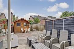 De ca. 11 meter diepe achtertuin is heerlijk zonnig en gelegen op het zuidoosten.