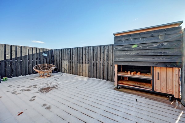 De dakopbouw (2021) is volledig geïsoleerd en biedt ruimte aan twee slaapkamers en bergruimte. Vanuit deze verdieping is er toegang tot het royale dakterras, dat veel privacy biedt en gunstig is gelegen op het zuidoosten.