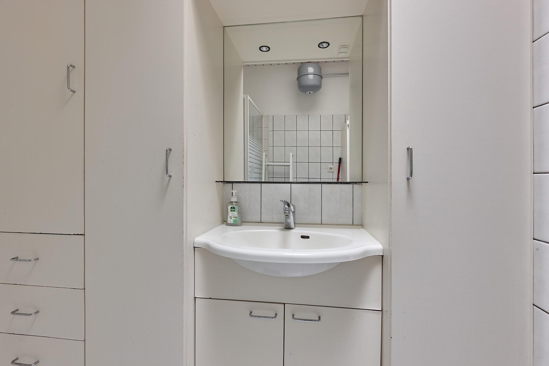 2. Ruime badkamer met douche, wastafelmeubel en veel opbergruimte