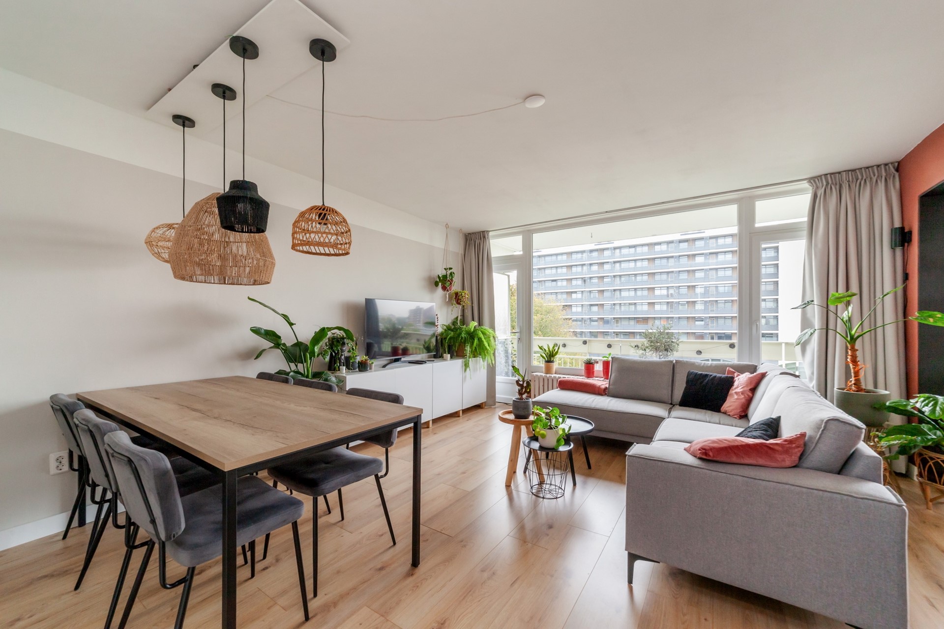 This charming apartment is located on the 7th floor (top floor) of a well-maintained complex with its own parking lot and offers beautiful panoramic views of the green surroundings. The location is very convenient, with Het Kleine Loo shopping center, Westfield Mall of the Netherlands, various public transport facilities including the Mariahoeve train station, and the A44/A4 highways just a short distance away.