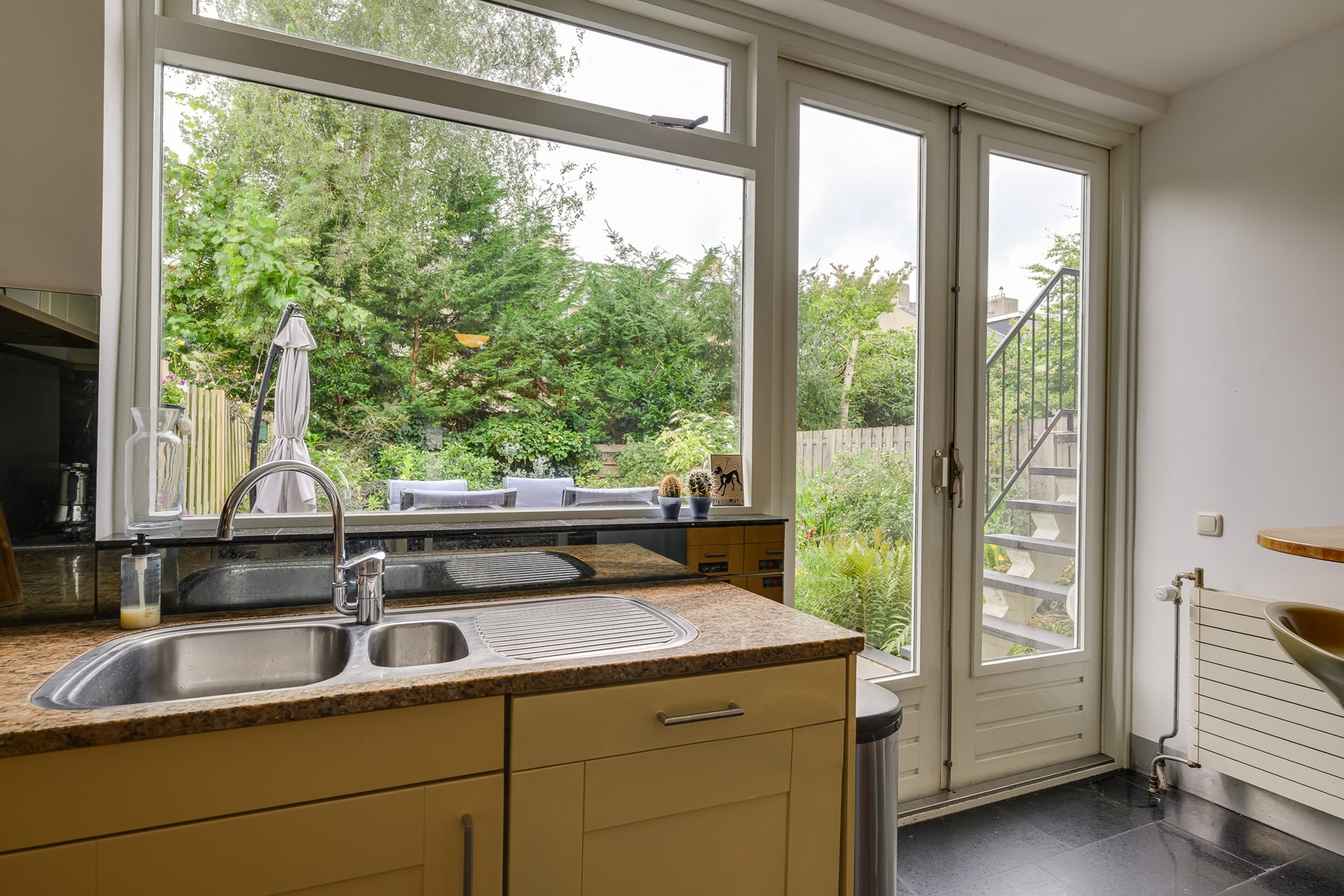 The basement offers a surprising amount of possibilities. Here you will find a large garage with laundry room and a spacious garden room with French doors leading to the back garden. Perfect as a home office, studio, or chill-out space for the kids.