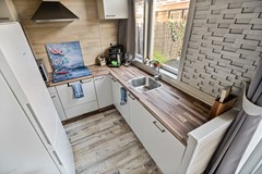 Via de entree kom je binnen in de hal met toegang tot het toilet, de trapopgang en de woonkamer. De woonkamer is een prettige en lichte ruimte met voldoende plaats voor zowel een zit- als eethoek, Aan de achterzijde van de woning bevindt zich de openkeuken, die net is afgewerkt. Vanuit de woonkamer bereik je door de openslaande deuren de achtertuin. De achtertuin is verzorgd aangelegd en beschikt over een vrijstaande berging.