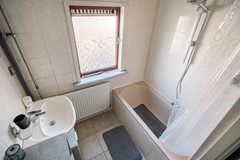 Op de eerste verdieping bevinden zich twee slaapkamers van goed formaat. Daarnaast is er een badkamer voorzien van een ligbad en wastafel. Direct naast de entree naar de badkamer is ruimte voor de wasmachine en droger. De overloop biedt toegang tot alle vertrekken op deze verdieping.