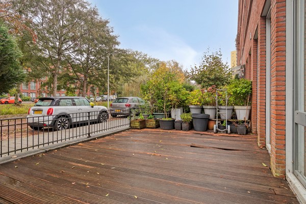 This home offers plenty of outdoor space. There’s a pleasant side garden that extends into the front garden — a perfect spot to relax and enjoy outdoor living. On the first floor, you’ll find a generous roof terrace facing northeast, where you can soak up the morning sun. From here, you have an open view over the green strip and plenty of space to create a cozy outdoor seating area. It’s the perfect place to enjoy your morning coffee in peace or to host friends for a summer barbecue.