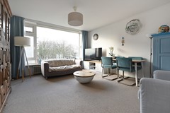Via de hal kom je in de woonkamer van maar liefst 21 m2. De woonkamer is aan de achterzijde van het appartement gelegen en geniet van veel daglicht door de gunstige ligging op het Zuidwesten. Vanuit de woonkamer kijk je uit op het groen en deels op het winkelcentrum Mariahoeve.