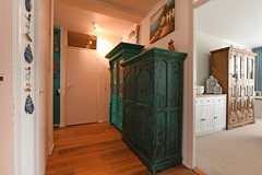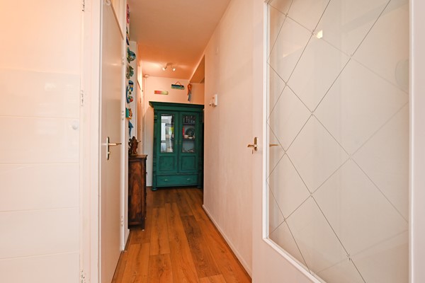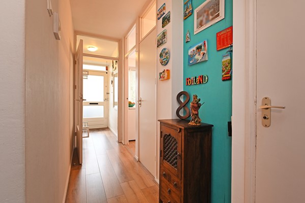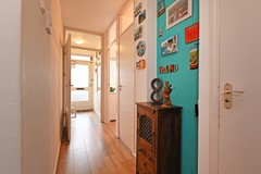 Het appartementencomplex is te betreden middels een gezamenlijk portiek. Er zijn twee liften en een trappenhuis beschikbaar. De appartementen worden per verdieping ontsloten middels een galerij. Dit hoekappartement geniet van veel daglicht en is rustig gesitueerd aan het einde van de galerij op de derde verdieping. Je komt de woning binnen in een afgesloten entree en vervolgens in de hal. Vanuit de gang is er toegang tot de vertrekken.