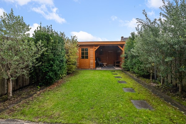 De ruime besloten tuin ligt heerlijk op het zuidoosten, dus je hebt de hele dag zon! Er is een terras om gezellig te zitten, een berging voor je spullen én een overkapping zodat je ook bij een buitje lekker buiten kunt blijven. Via de achterom kom je makkelijk met je fiets of tuinafval achter.
