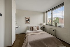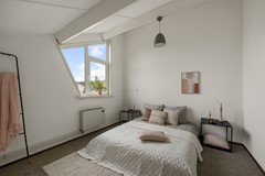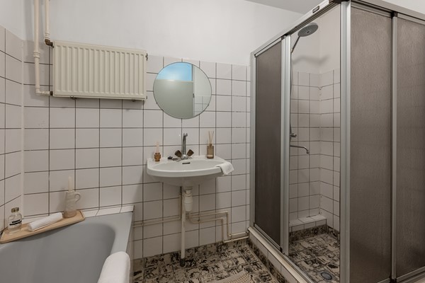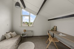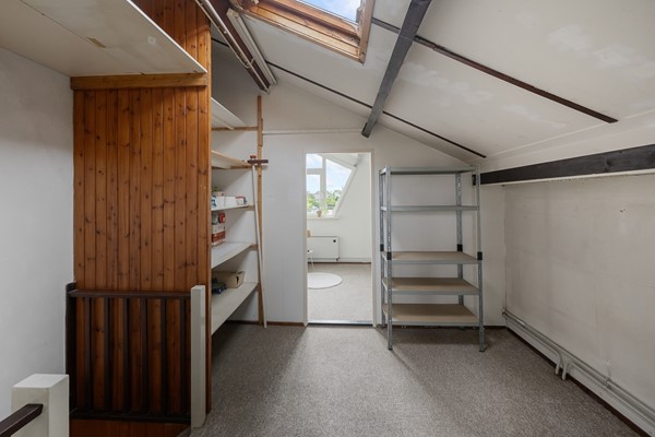 Via de vaste trap bereik je de royale zolder. Hier vind je een ruime overloop met extra bergruimte, de cv-ketel en aansluitingen voor de wasmachine. Daarnaast zijn er nog twee ruime slaapkamers, zodat ieder gezinslid zijn of haar eigen plekje heeft. Dankzij de hoge plafonds voelen de kamers extra ruim aan en geven ze een speels effect.