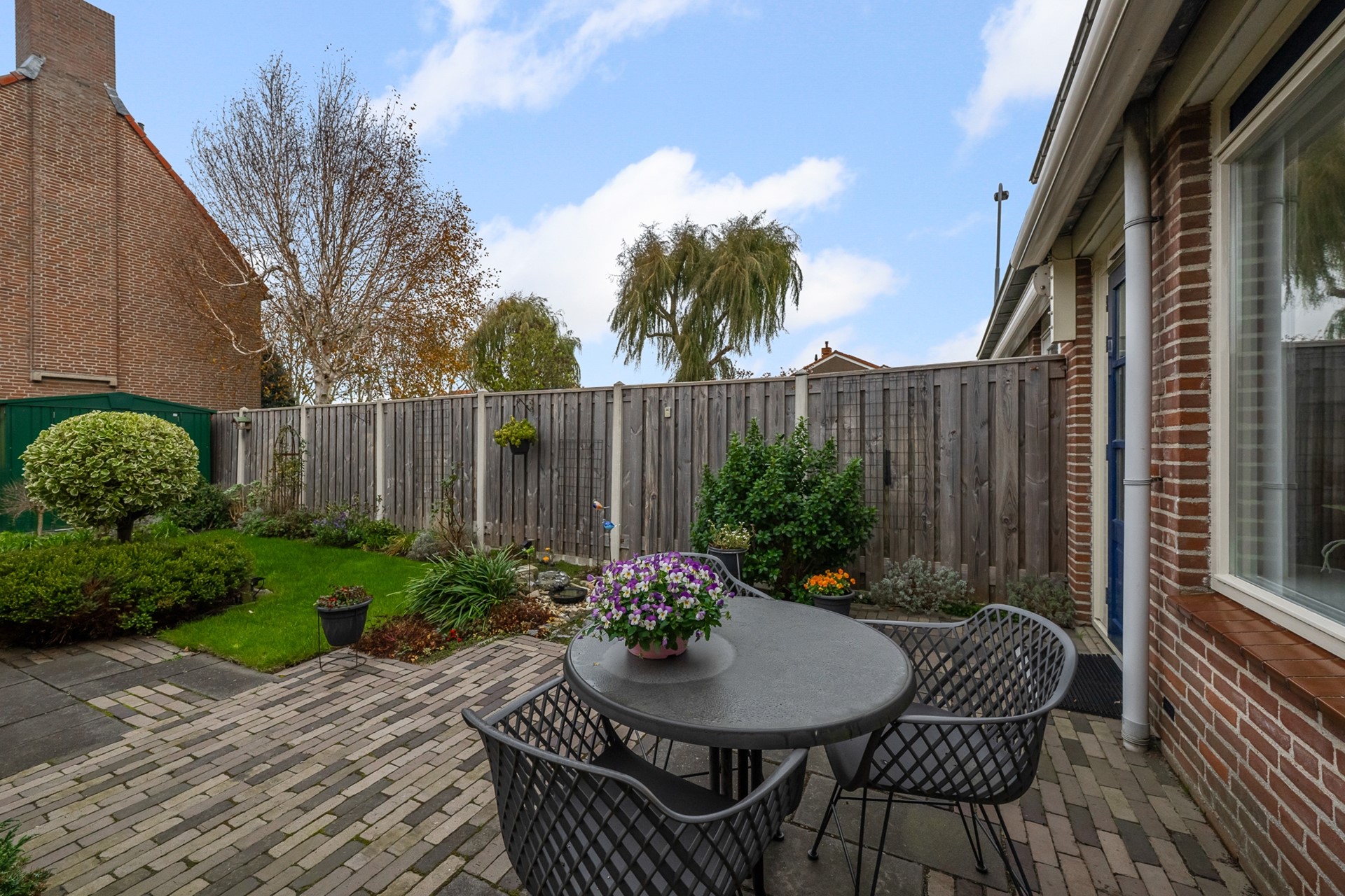De woning beschikt over een verzorgde westelijk gelegen achtertuin, bestaande uit zowel bestrating als groen. Een heerlijke plek om te zitten, te spelen of te tuinieren. Verder is er een achterom en een separate berging voor bijvoorbeeld fietsen en gereedschap.
