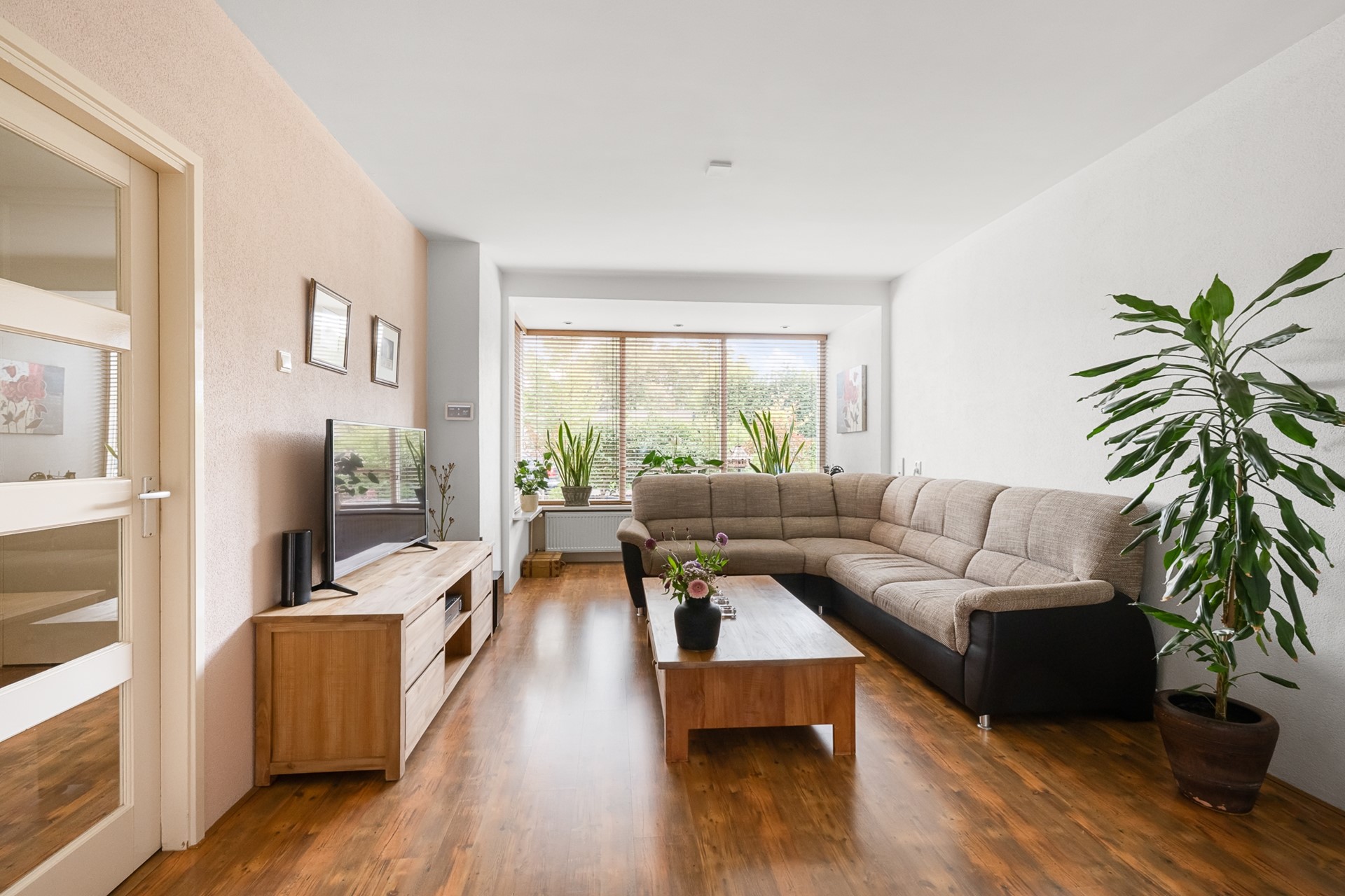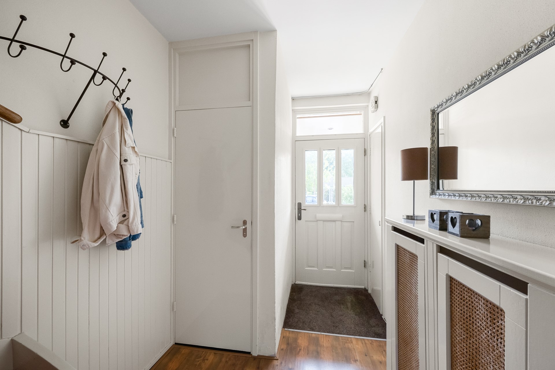 Via de overkapte entree kom je binnen in de ruime hal, waar je direct toegang hebt tot de meterkast, trapopgang, een praktische trapkast en het toilet. Vanuit de hal stap je de lichte woonkamer binnen: de grote ramen, de erker aan de voorzijde en de open verbinding met de eetkamer zorgen voor een heerlijk ruimtelijk gevoel. De keuken is voorzien van voldoende werk- en bergruimte. Via de openslaande deuren loop je zo de tuin in.