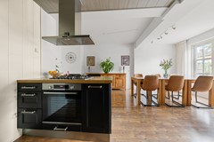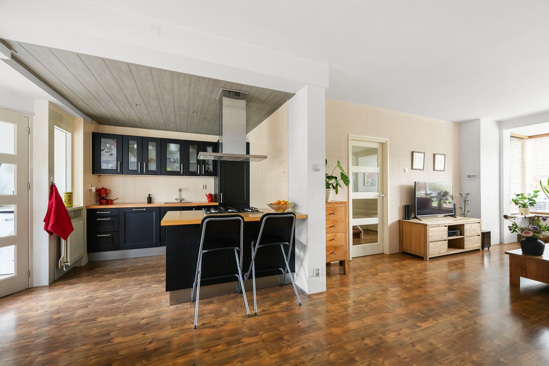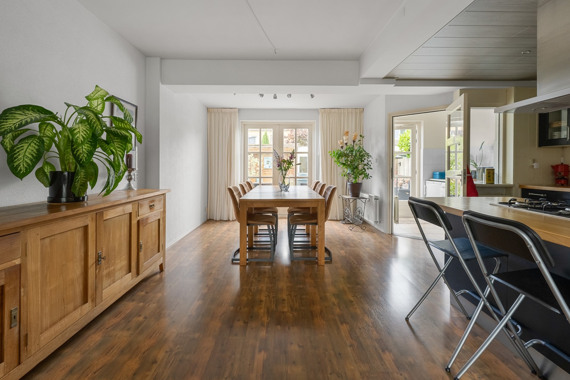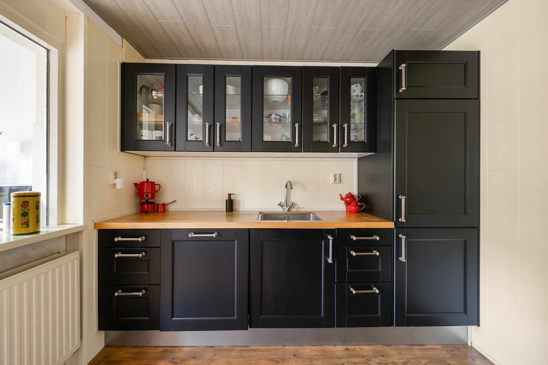 Aan de achterzijde bevindt zich de handige bijkeuken met aansluitingen voor wasmachine en droger en extra ruimte voor voorraad of apparatuur – een echte plus in het dagelijks gebruik.
