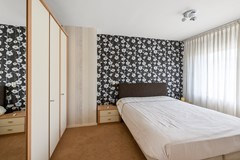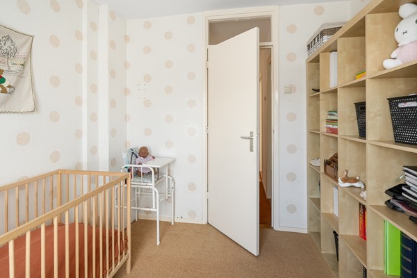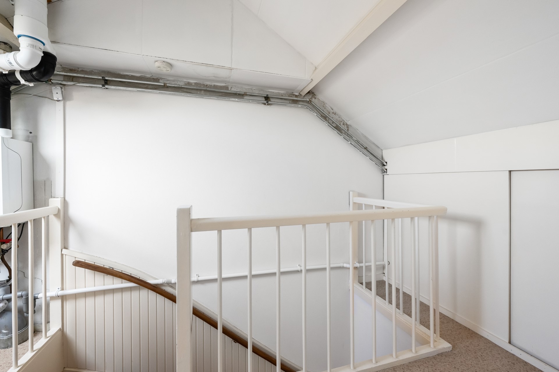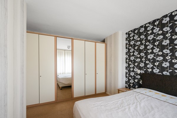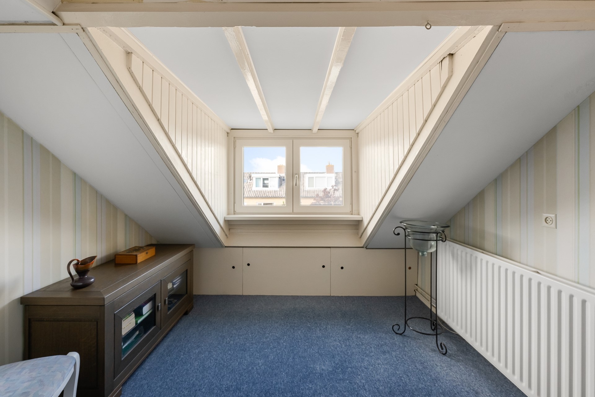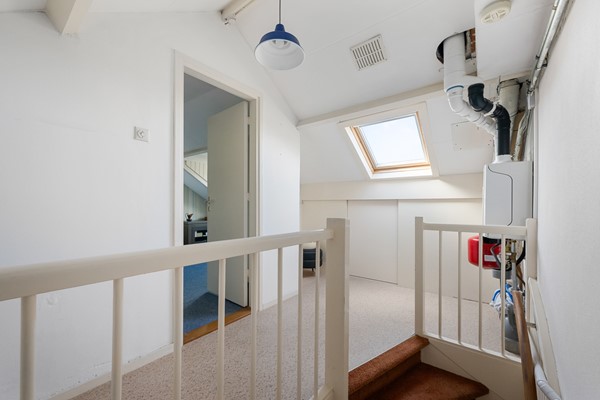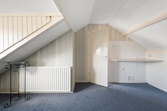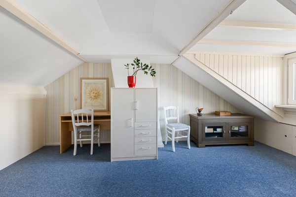 Met de vaste trap bereik je de tweede verdieping. De ruime vierde slaapkamer biedt veel opbergruimte achter de knieschotten en in aparte bergingen. Op de voorzolder bevindt zich de cv-installatie.