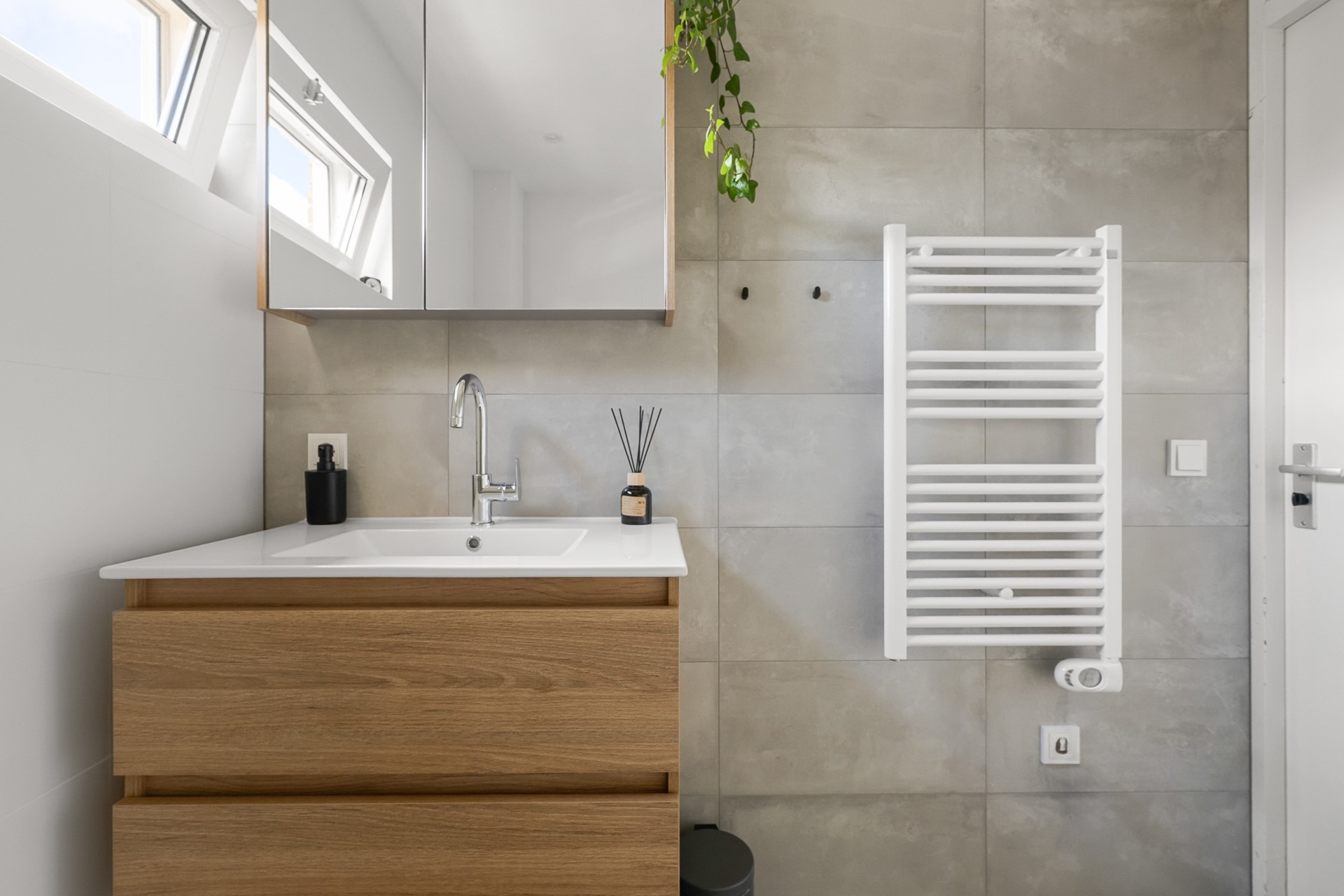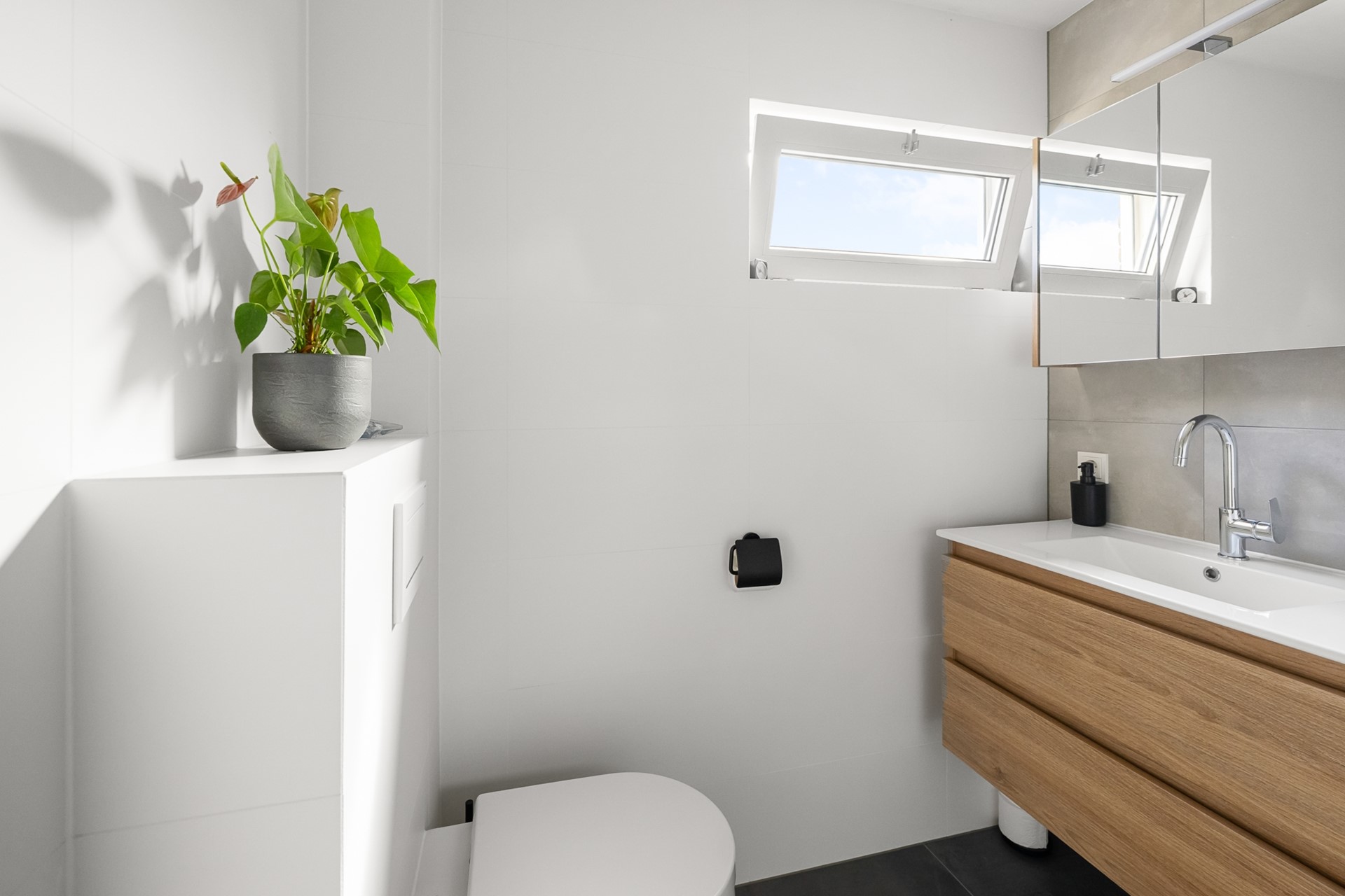 De overloop geeft toegang tot drie goed bemeten slaapkamers, stuk voor stuk licht en praktisch in te richten. De moderne badkamer is stijlvol afgewerkt en uitgerust met een ruime inloopdouche, een tweede toilet en een wastafelmeubel.