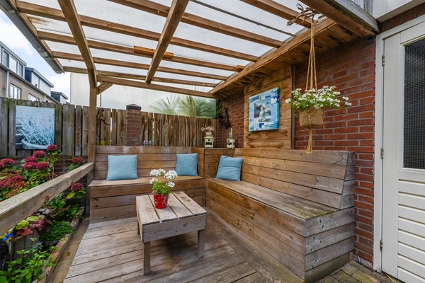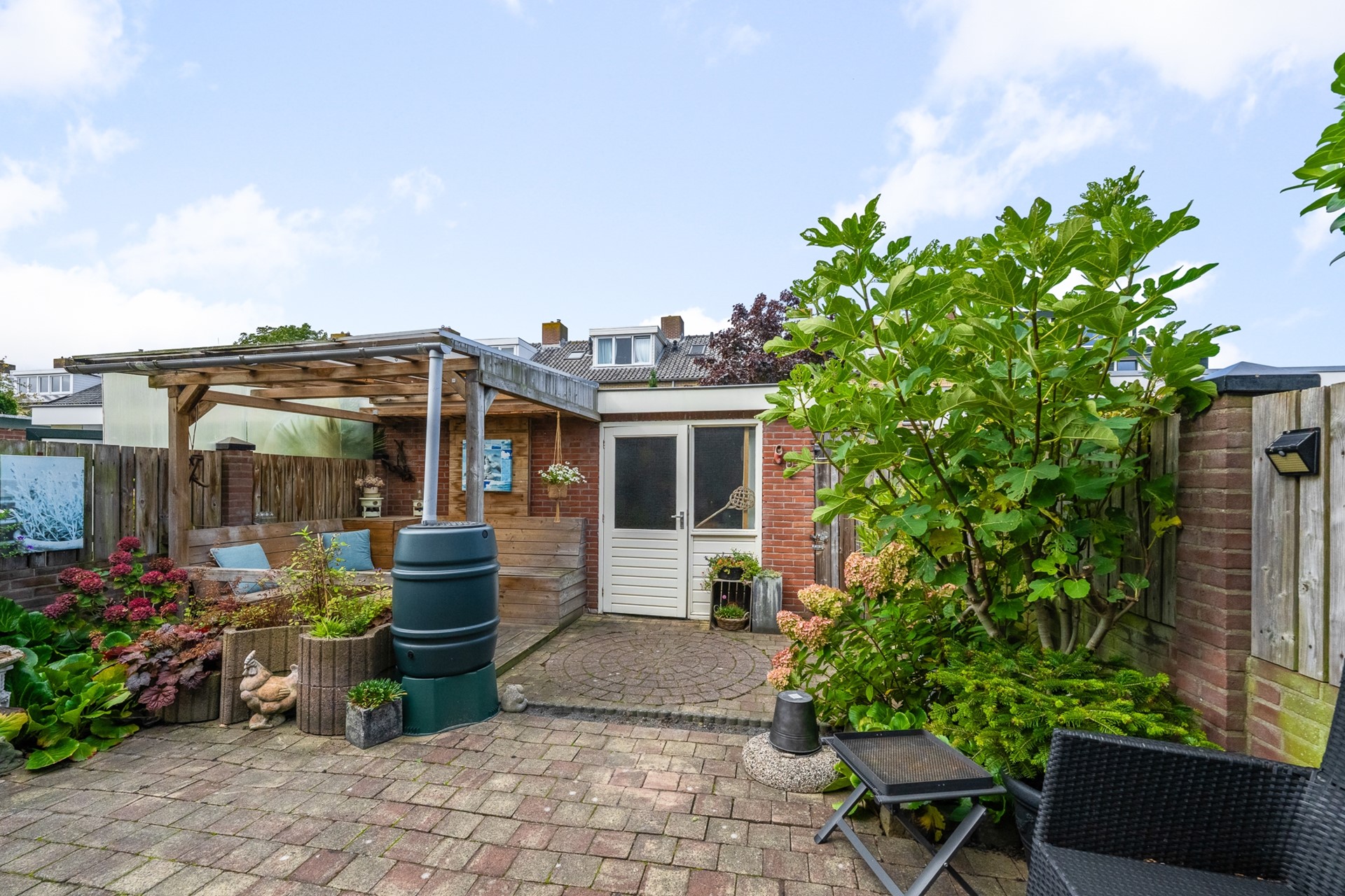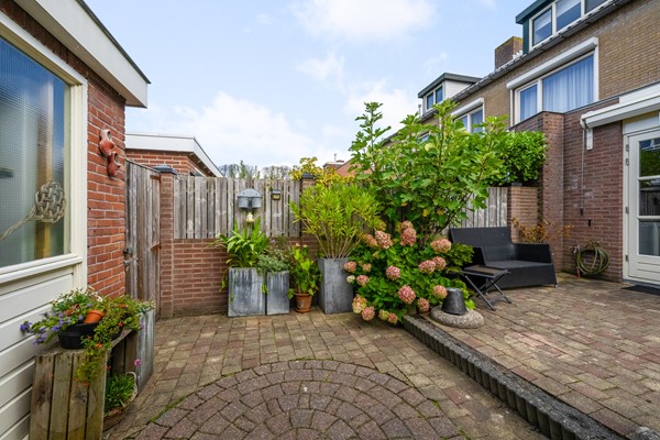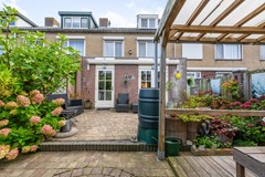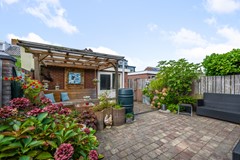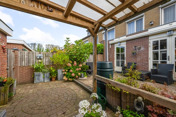 De achtertuin is gelegen op het westen en is verzorgd aangelegd met bestrating en groen. Er is een overkapping voor gezellige avonden in de buitenlucht, een stenen berging én een achterom.