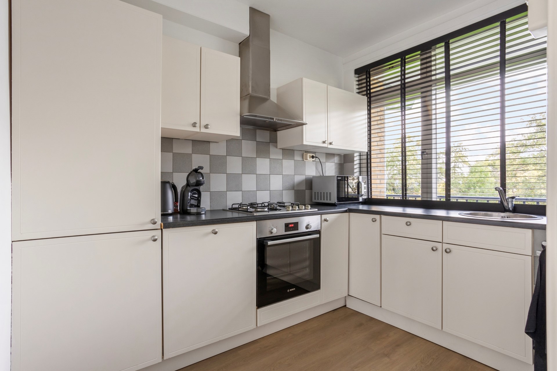 Toegang via afgesloten entree met toegang tot de bergingen en voorzien van brievenbussen en videofoon. Via trap naar de eerste verdieping alwaar de lift en trap toegang bieden tot de tweede verdieping. Het leukste appartement van het gebouw bevindt zich aan het einde van de galerij waar je ook heerlijk in de ochtend met een kopje koffie of in de avond met een wijntje op een bankje op de galerij kunt genieten van het groene uitzicht. De hal biedt toegang tot alle vertrekken en is voorzien van een meterkast en ruime voorraadkast. De keuken aan de voorzijde is in een L opstelling waardoor er de beschikking is tot veel werkblad. Daarnaast is het voorzien van diverse inbouwapparatuur waarvan de vaatwasser uit 2021 en de oven en afzuigkap uit 2024.