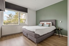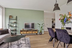 De heerlijk lichte woonkamer is door de hoekligging gericht op het zuidoosten en voorzien van grote ramen en een klein balkon op het oosten. Door de open toegang tot de hal is een fijne grote en open ruimte ontstaan en is er makkelijk interactie tussen de keuken en woonkamer, dus perfect als je eters op bezoek hebt! Zowel aan de voor- als de achterzijde bevindt zich een ruime slaapkamer van ca. 13 m2. De badkamer is van 2015 en voorzien van een net wastafelmeubel, douche, wasmachine- en boiler opstelling. Naast de badkamer bevindt zich het separate toilet.