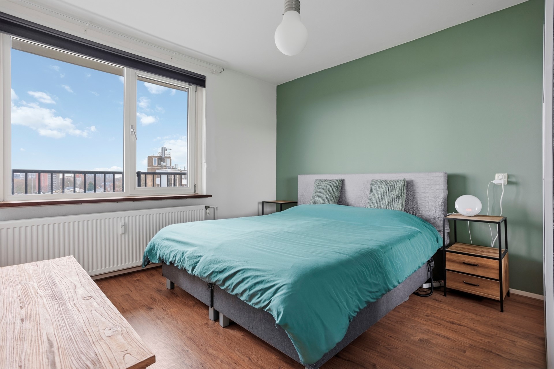 De riante en lichte woonkamer is door de hoekligging gericht op het zuidoosten en voorzien van grote ramen en een klein balkon op het oosten. Door de opengebroken muur tussen de woonkamer en 2e slaapkamer is een ruime woon-/eetkamer ontstaan. Aan de voorzijde bevindt zich een ruime slaapkamer van ca. 13 m2. De badkamer is recent gemoderniseerd en voorzien van een robuust wastafelmeubel, douche met sunshower en boiler opstelling. Naast de badkamer bevindt zich het separate moderne toilet.