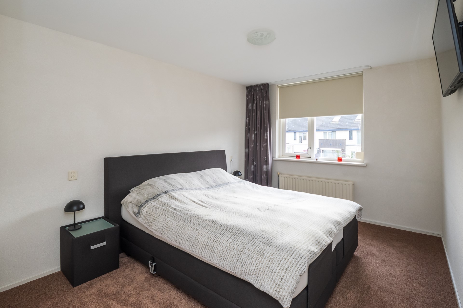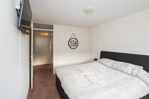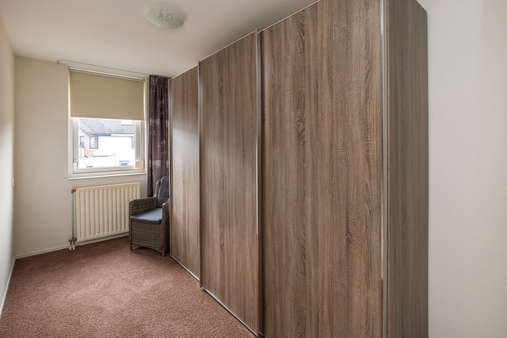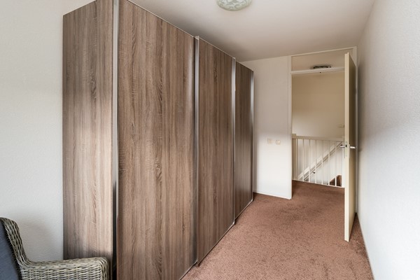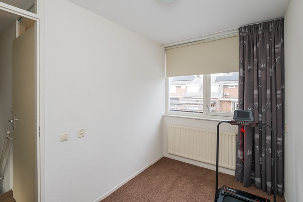 De 2de slaapkamer is gelegen aan de voorzijde van de woning en is eveneens ruim van formaat. Hier kan met gemak een tweepersoonsbed staan. De 3de slaapkamer ligt eveneens aan de voorzijde en is momenteel ingericht als garderobekamer. De schuifkastenwand is ter overname. Beide kamers hebben een prettig ruim uitzicht over de straat, waarbij de ramen zijn voorzien van een zonwerende screens.