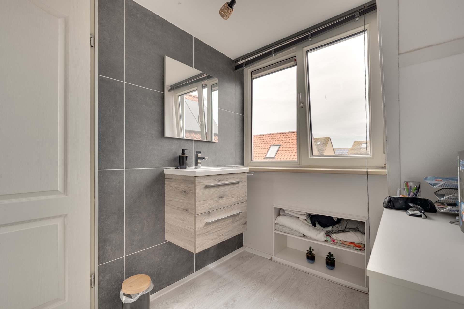 Eerste verdieping, overloop met toegang tot 2 slaapkamers met wastafel.