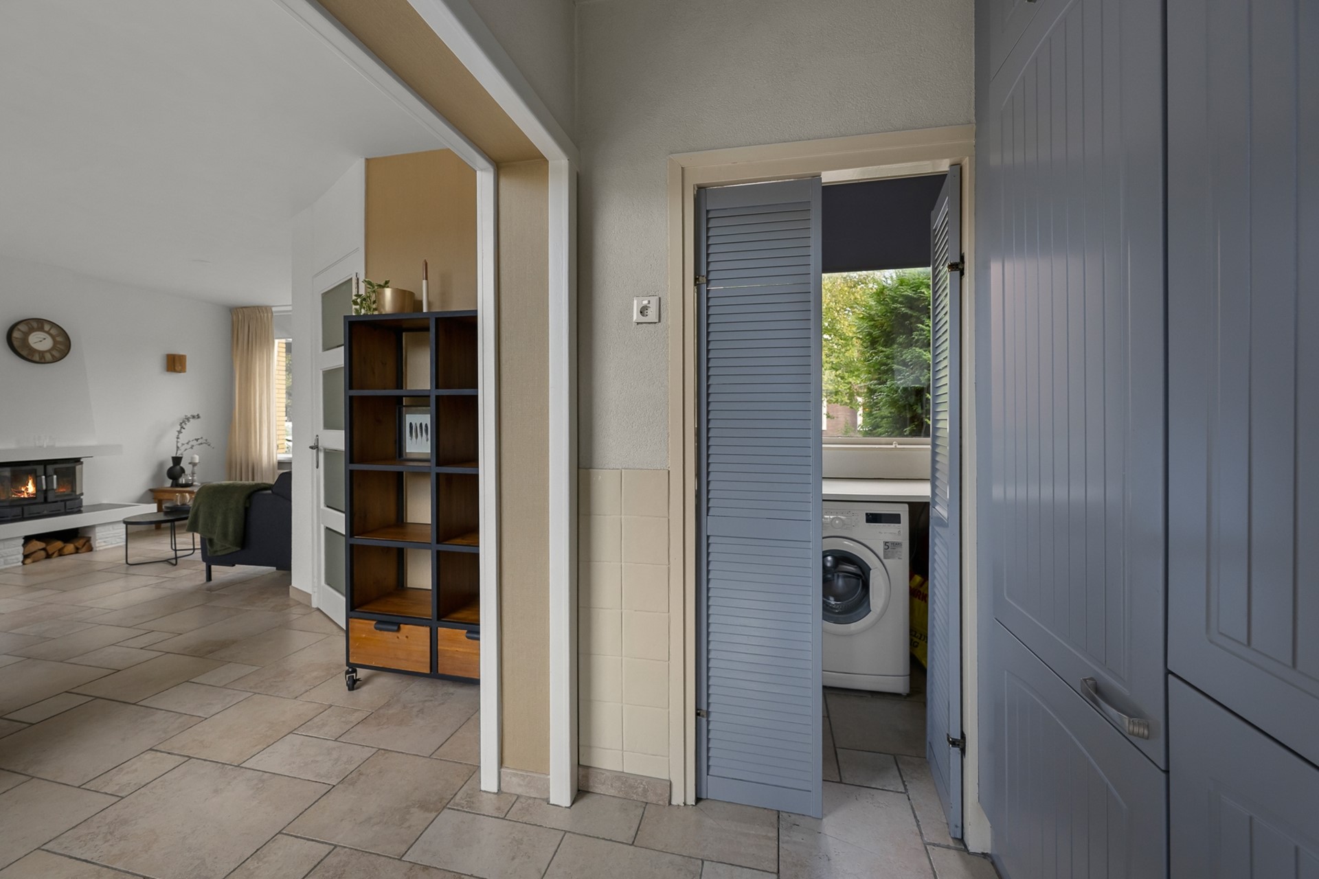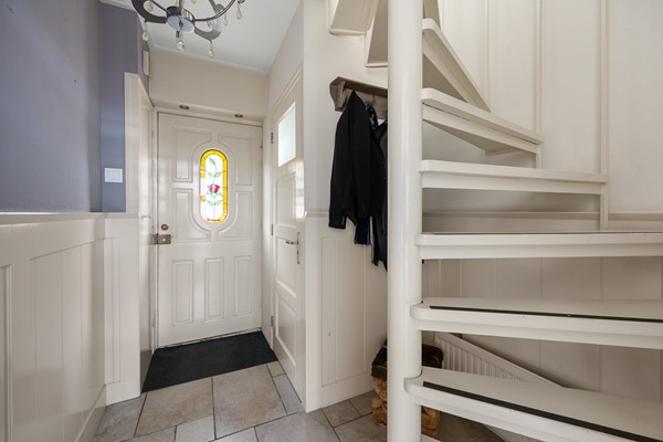 Je komt binnen via de entree/hal waar direct een toilet en meterkast te vinden zijn. Vanuit de hal stap je de woonkamer binnen, een heerlijke, lichte ruimte. In de winter geniet je van de warmte en sfeer van de open haard. De half open keuken is voorzien van diverse inbouwapparatuur. In de keuken is toegang tot een praktische bijkeuken, ideaal voor extra bergruimte, de wasmachine, droger en de cv-installatie. Vanuit zowel de keuken als de woonkamer heb je toegang tot de zonnige achtertuin , perfect voor een kop koffie in de ochtendzon of een gezellige borrel in de avond.