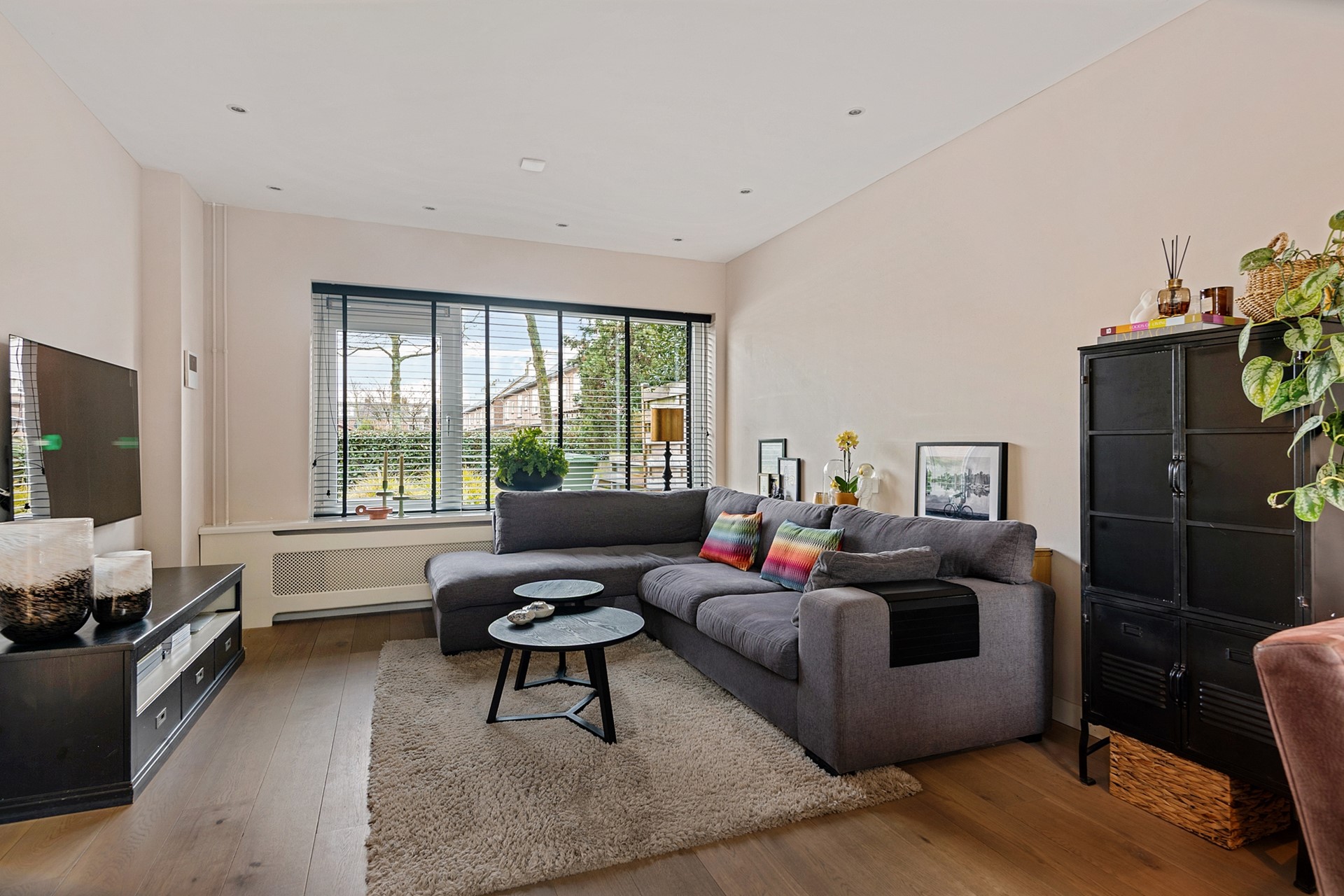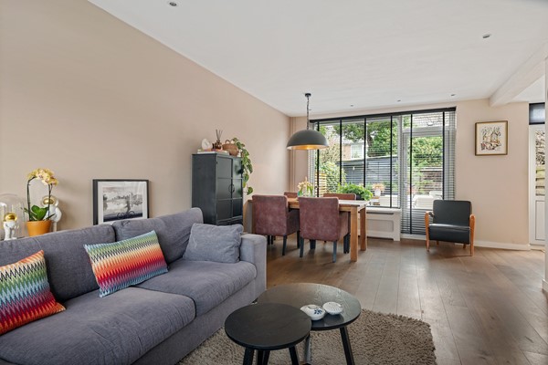 Deze tussenwoning werd gebouwd in 1965 en is verrassend ruim. in de woonkamer komt veel licht dankzij grote raampartijen die uitkijken op de voortuin. Het is een echte doorzonwoning. Dus of je nou met het gezin aan tafel zit te ontbijten, of samen gezellig op de bank plaats neemt na een drukke dag – er is plek genoeg!
