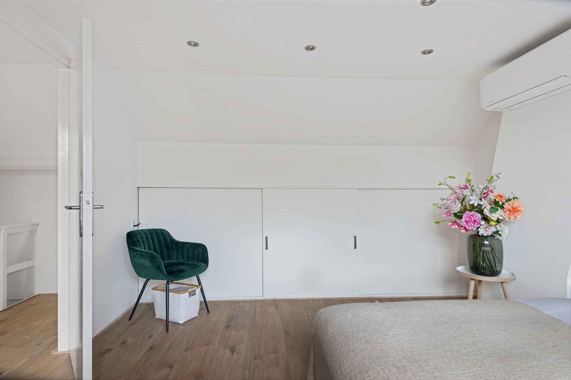 De keuken? Lekker licht, praktisch én natuurlijk volop mogelijkheden om je eigen smaak toe te voegen. De bovenverdieping heeft twee slaapkamers, een badkamer, de tweede toilet en een waskamer. op de bovenste verdieping vind je de ruime derde slaapkamer. Beide slaapkamers aan de achterzijde van de woning hebben een airco.