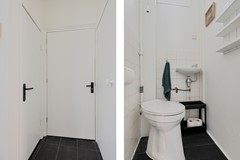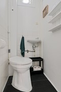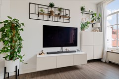 Op de 1ste verdieping is een grote entree met de deur naar het terras. Je komt de woning binnen in de hal met aan je rechter hand de deur naar het toilet en aan de linkerkant de deur naar de trap naar de tweede verdieping. Vanuit de hal loop je gelijk de recent (2024) vernieuwde keuken binnen met diverse inbouw apparatuur zoals, een inductiekookplaat met geïntegreerde afzuiging, oven, koel/vries-combinatie en afwasmachine. Vanuit het raam in de keuken kijk je uit op het zeer ruime balkon (ca.26,4m2). Vanuit de keuken loop je door naar de ruime woonkamer met de grote ramen en uitzicht op de winkelstraat.