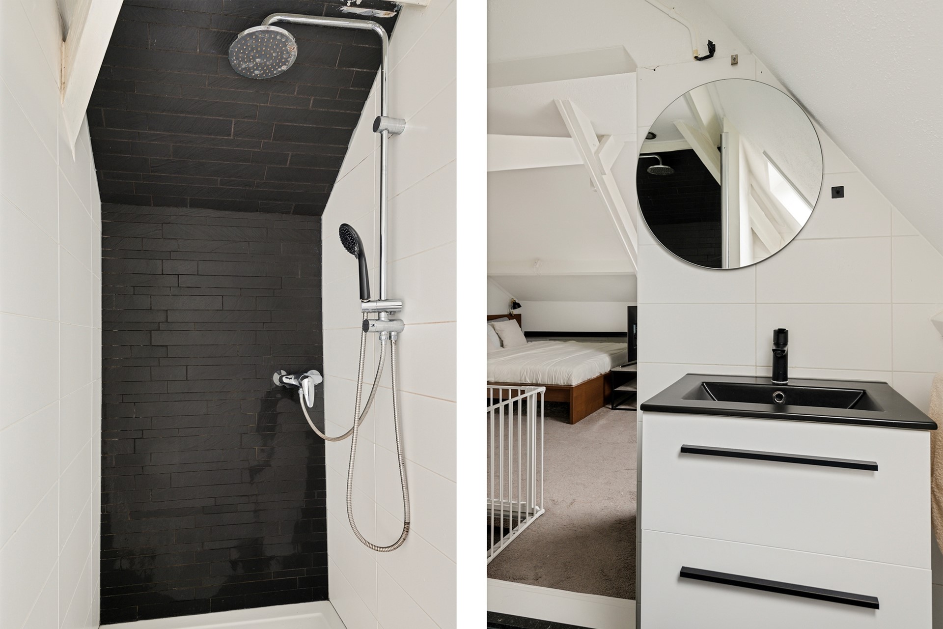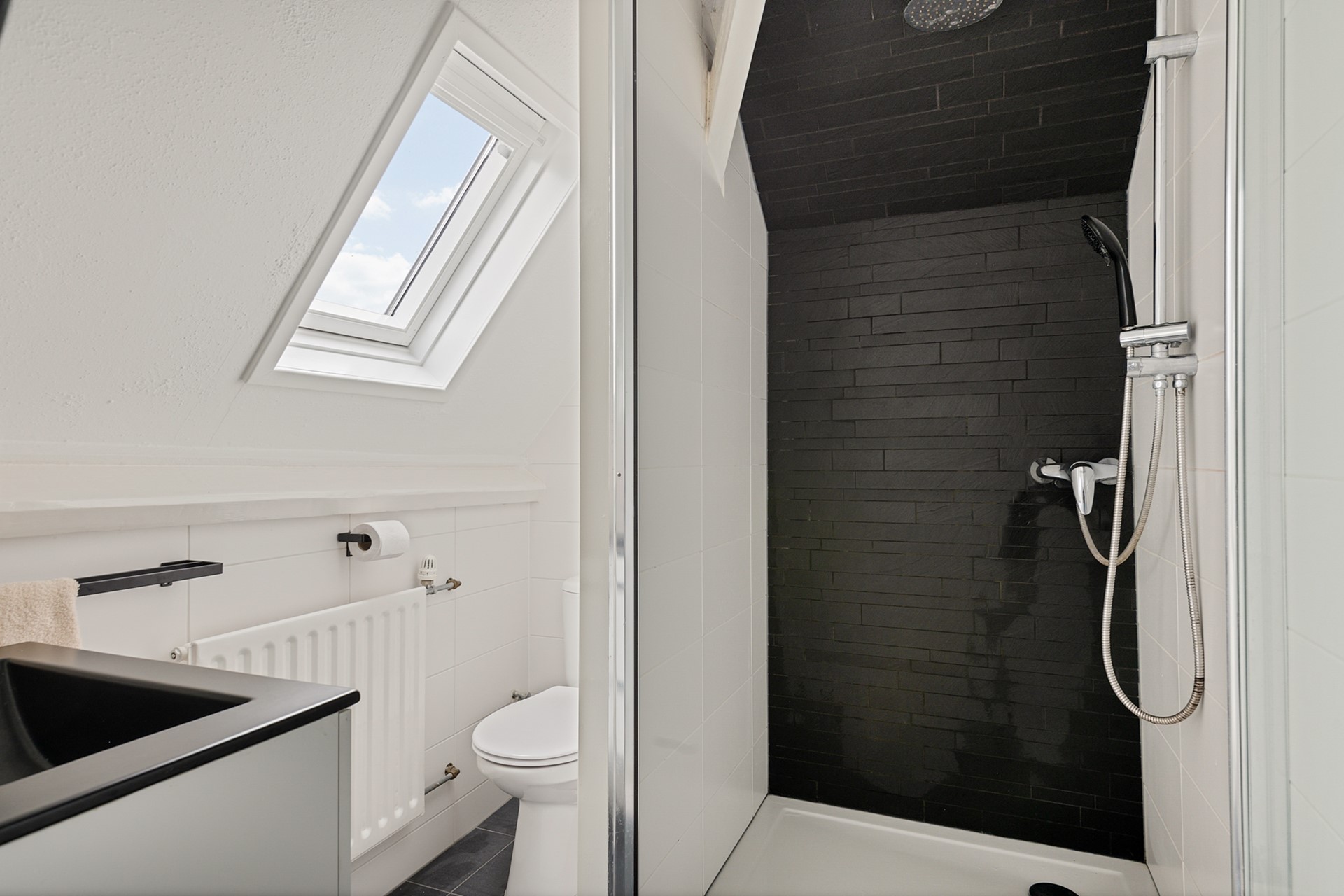 Op de tweede verdieping vind je twee slaapkamers en de badkamer met inloopdouche, wastafel met meubel en de tweede toilet.