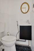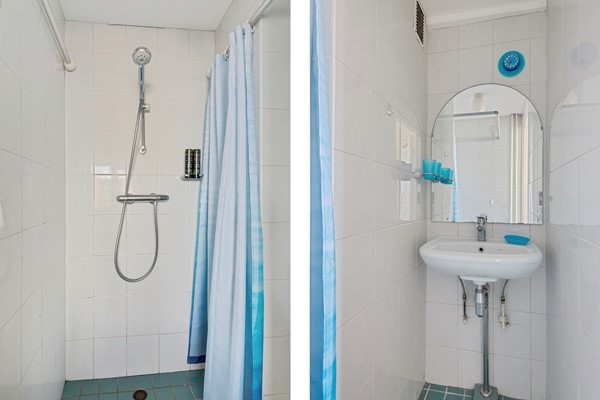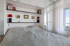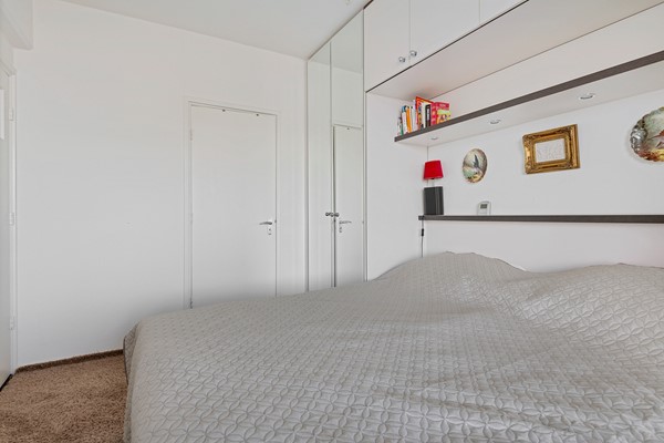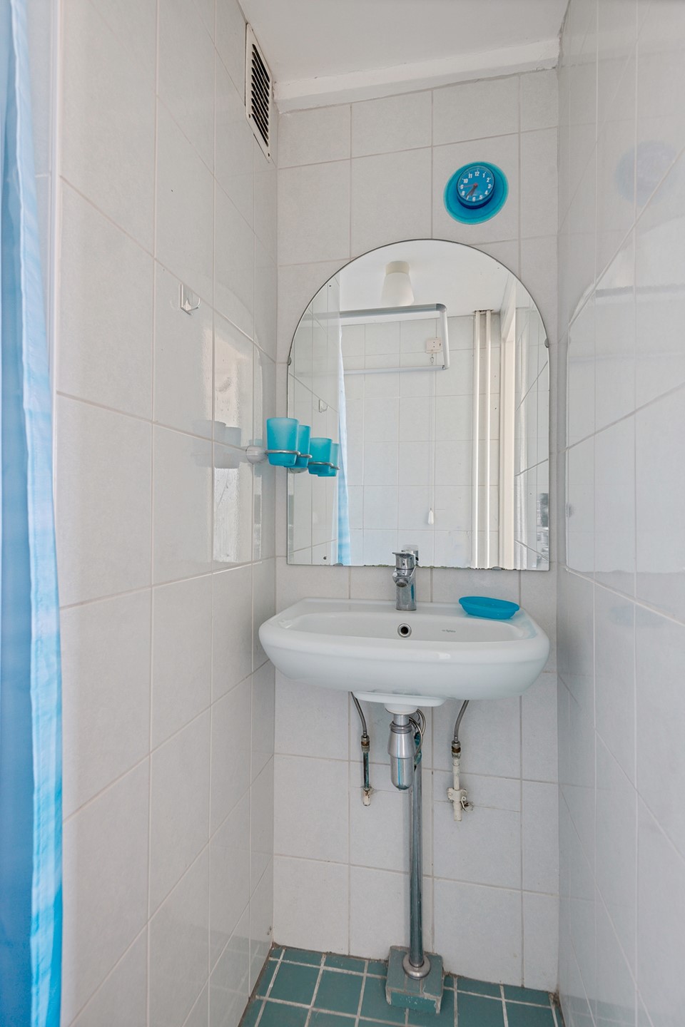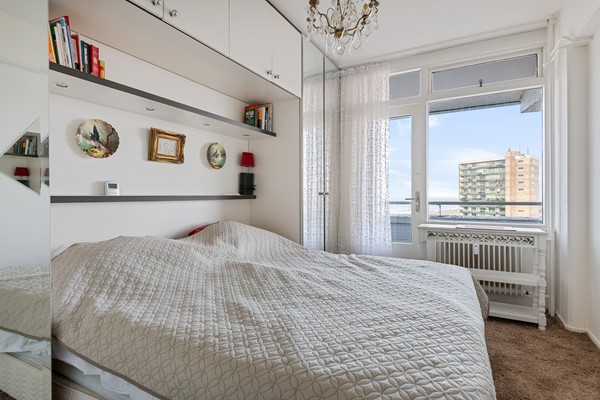 De slaapkamer is ruim en voorzien van vloerbedekking en geeft ook toegang tot het balkon en de aangrenzende badkamer. Deze is voorzien van douche en wastafel. Het toilet bevindt zich in een aparte ruimte in de hal.