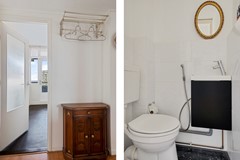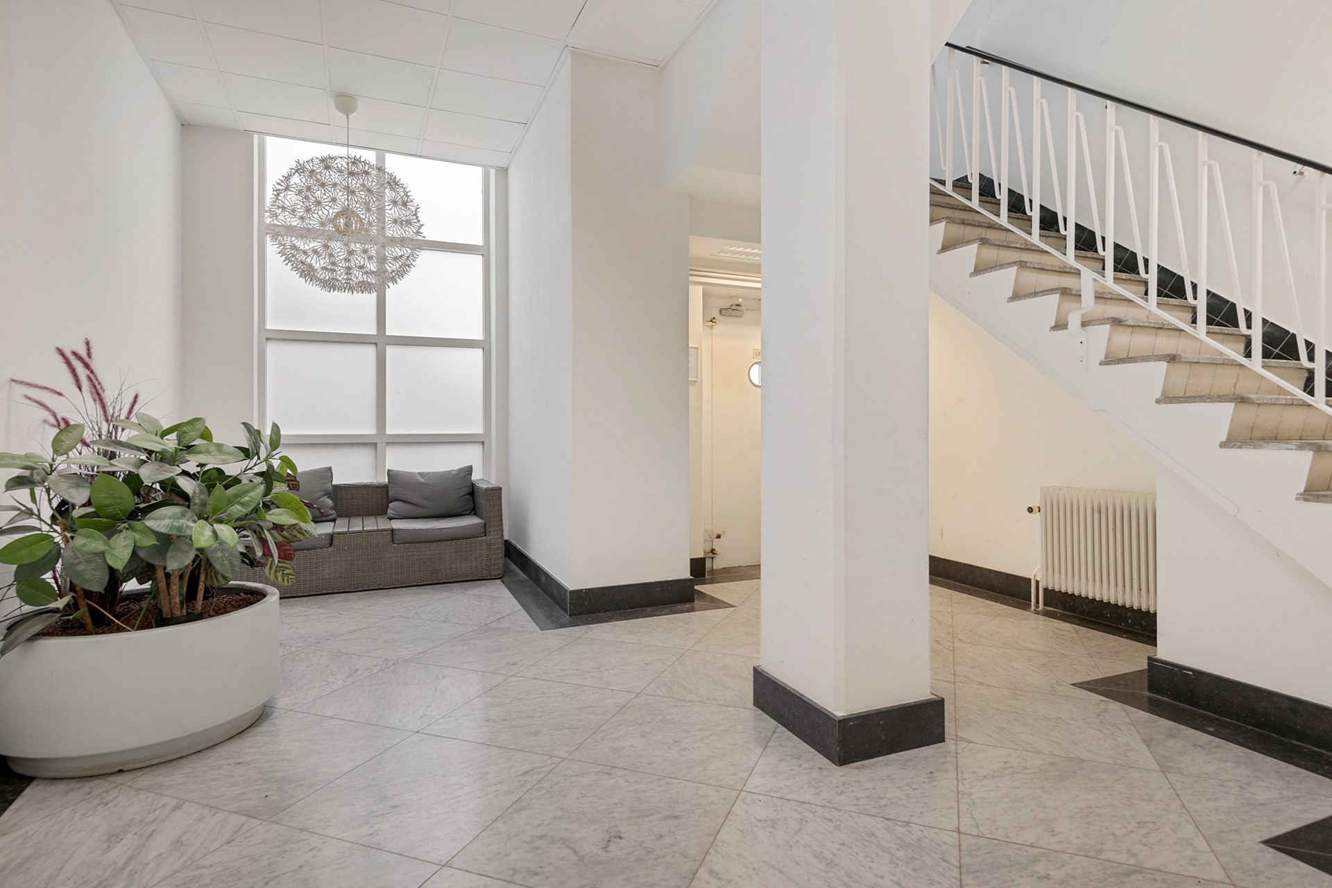 Begane grond: centrale hal (gerenoveerd in 2022) met brievenbussen, bellentableau en afgesloten deur naar de hal.