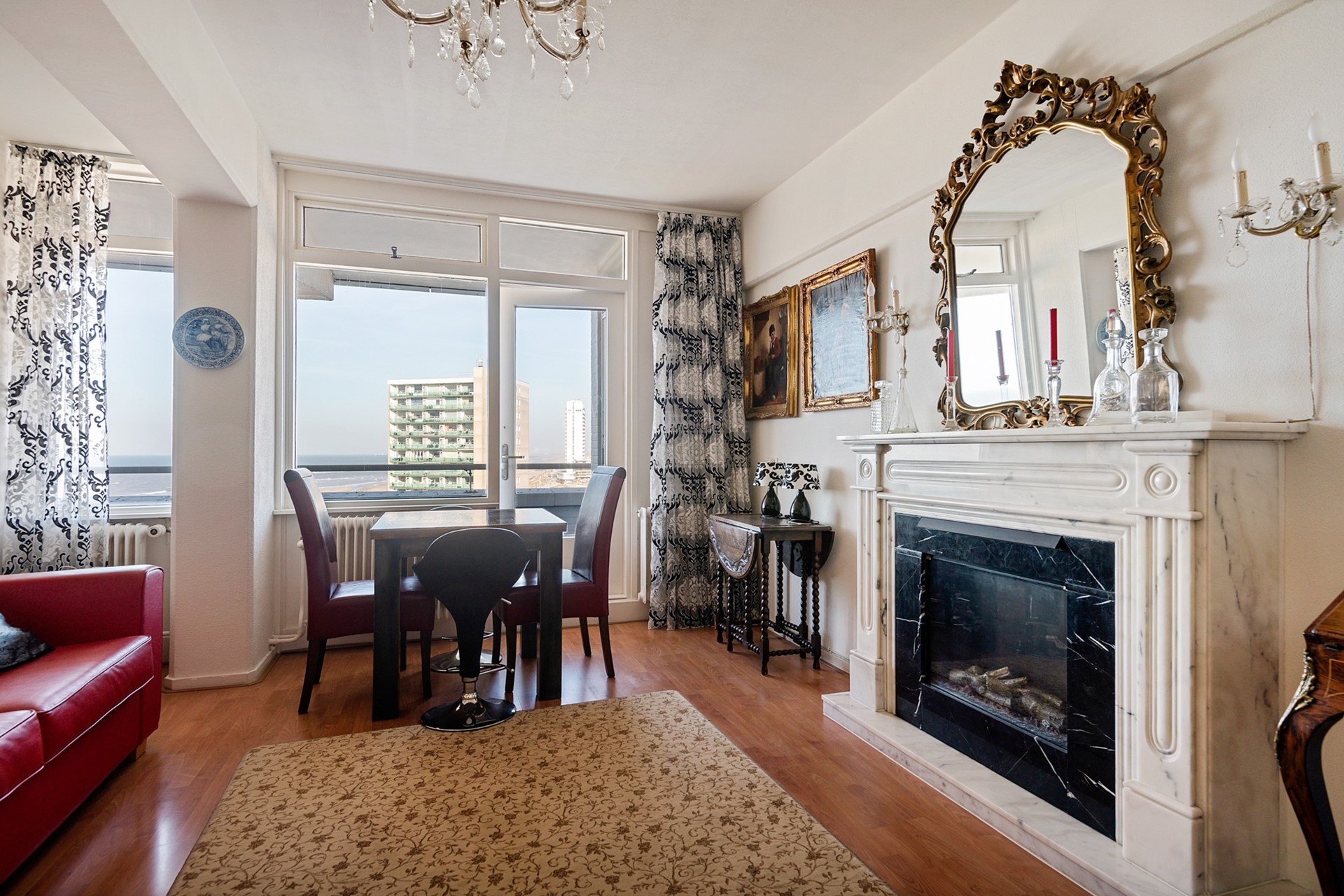 Door de vele ramen is het een heerlijk licht appartement met in de woonkamer een laminaatvloer en een schouw met sfeer haard. Het balkon (15,3m2) loopt over de volle breedte van het appartement en is vanuit alle vertrekken te betreden.