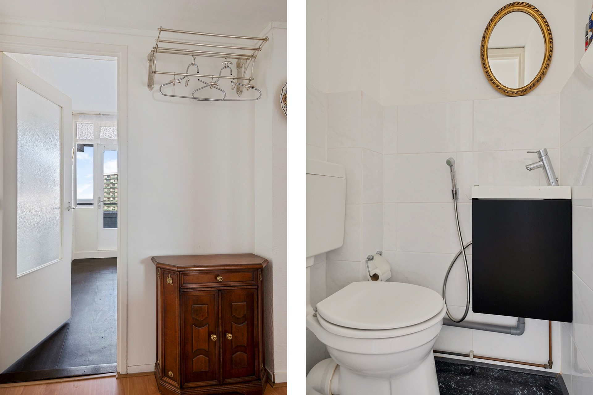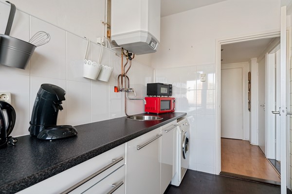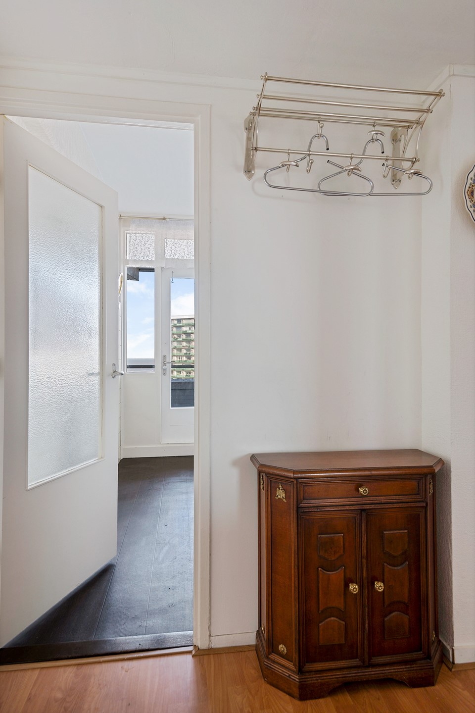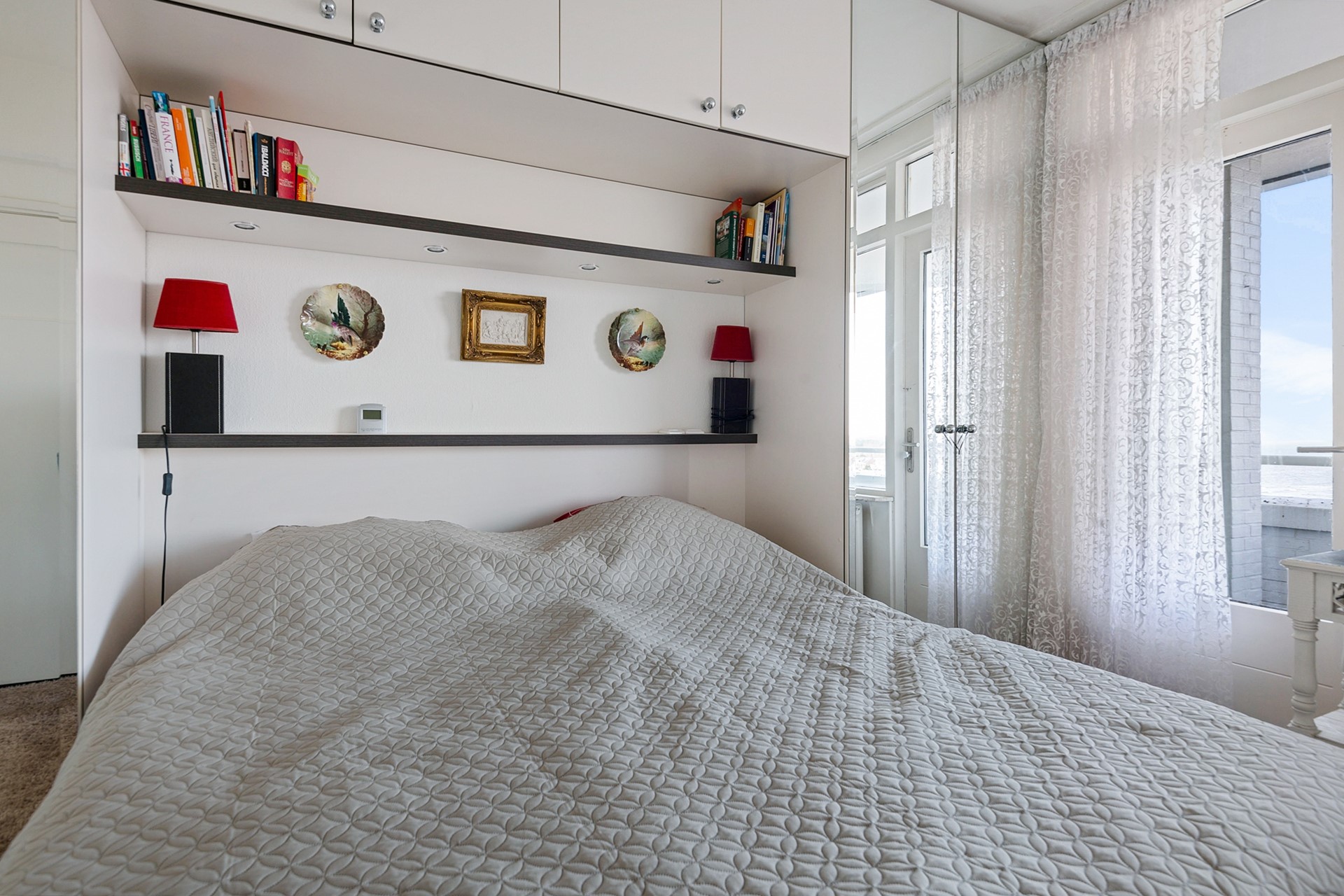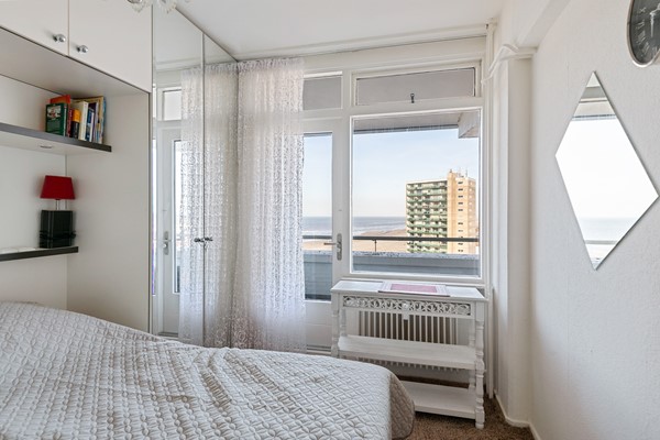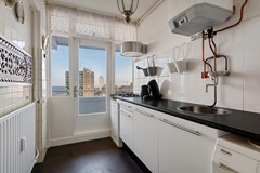 Je komt de woning binnen in de hal waaraan de keuken, slaapkamer, toilet en woonkamer grenzen. Deze woonkamer kenmerkt zich door veel lichtinval en natuurlijk het prachtige uitzicht over zee in noordelijke richting. Vanaf hier kun je naar het balkon.