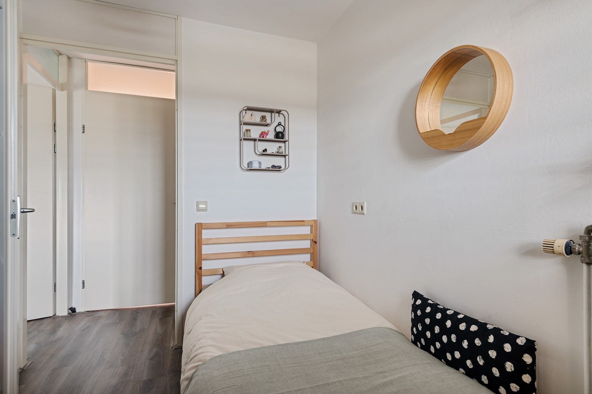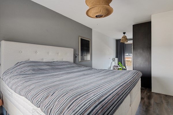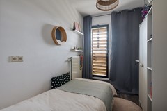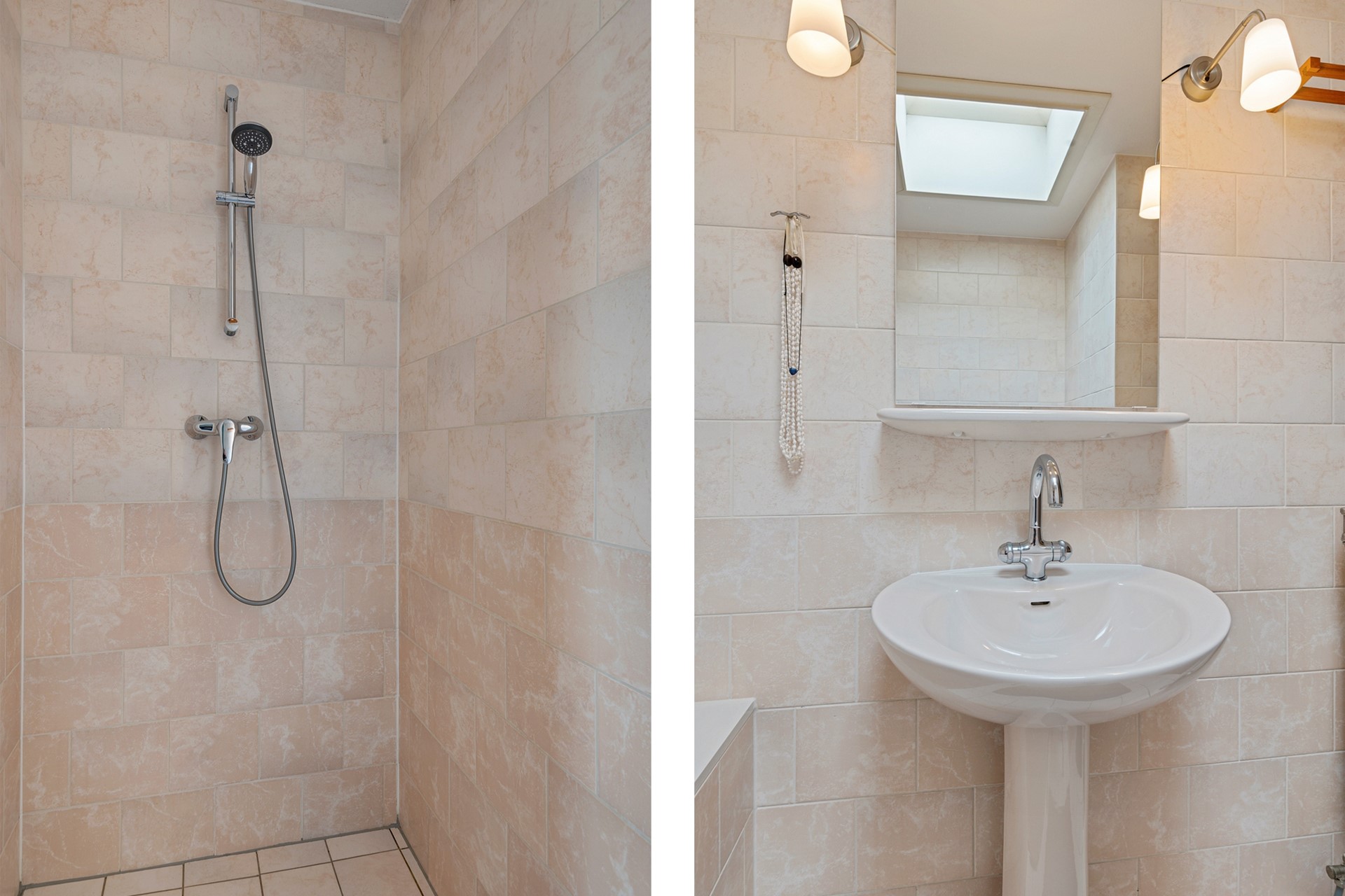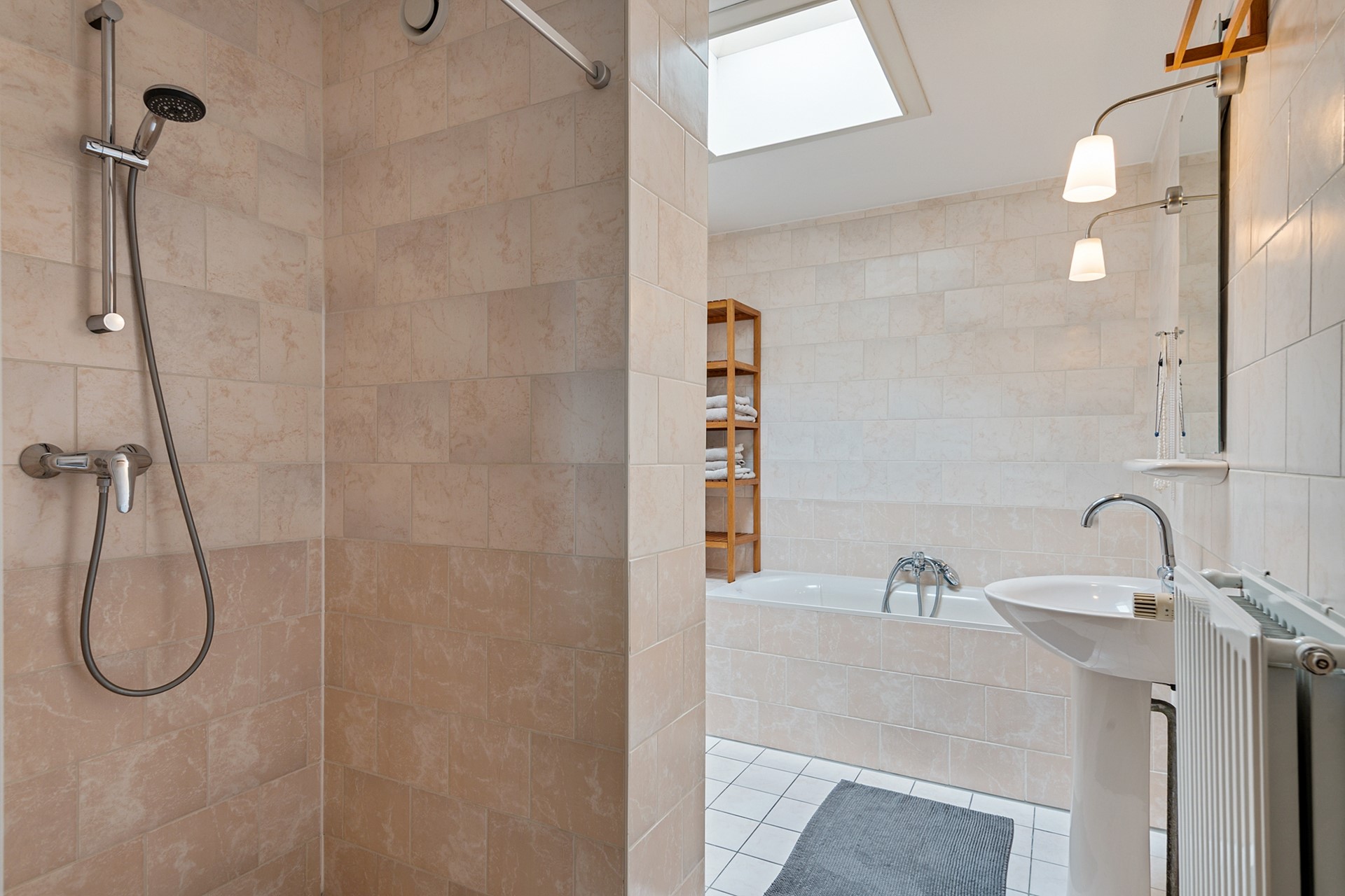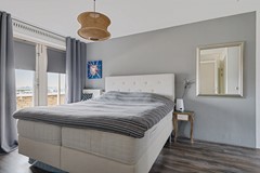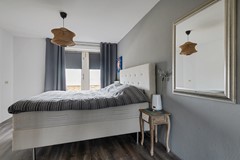 Overloop met toegang naar de ruime badkamer met inloopdouche, wastafel, toilet en ligbad. Grote slaapkamer aan de voorkant met openslaande deuren naar het ruime balkon op het westen waar je in de avond een prachtig zicht op de ondergaande zon hebt en aan de andere zijde heb je de deur naar het ruime 2de balkon op het oosten waar je in de ochtend kunt genieten van de zonsopgang boven de duinen. De tweede slaapkamer ligt aan de achterkant.