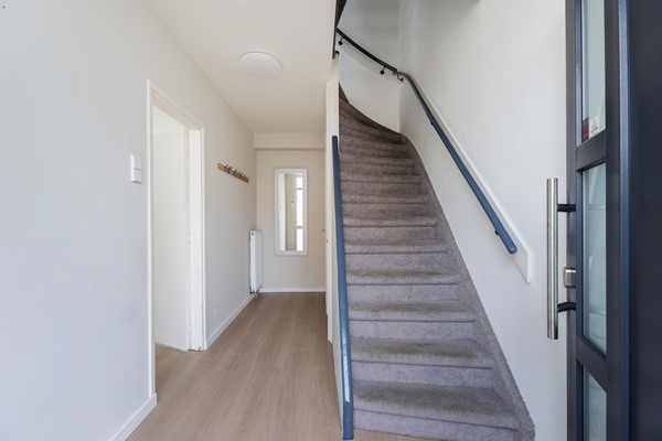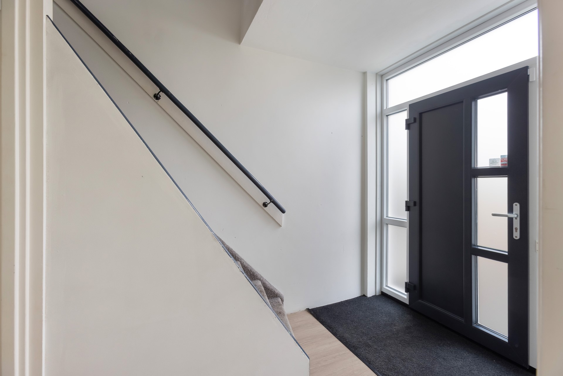 Laten we eens samen naar binnen lopen. De kunststof voordeur en pui zorgen gelijk voor een stijlvolle, onderhoudsarme entree. Geen gedoe meer met schilderwerk, terwijl het er wél strak uitziet – en dat geldt trouwens ook voor de balkondeur en de kozijnen aan de achterkant van het huis. Alles is in 2020 vervangen en uitgevoerd in onderhoudsvriendelijk kunststof.