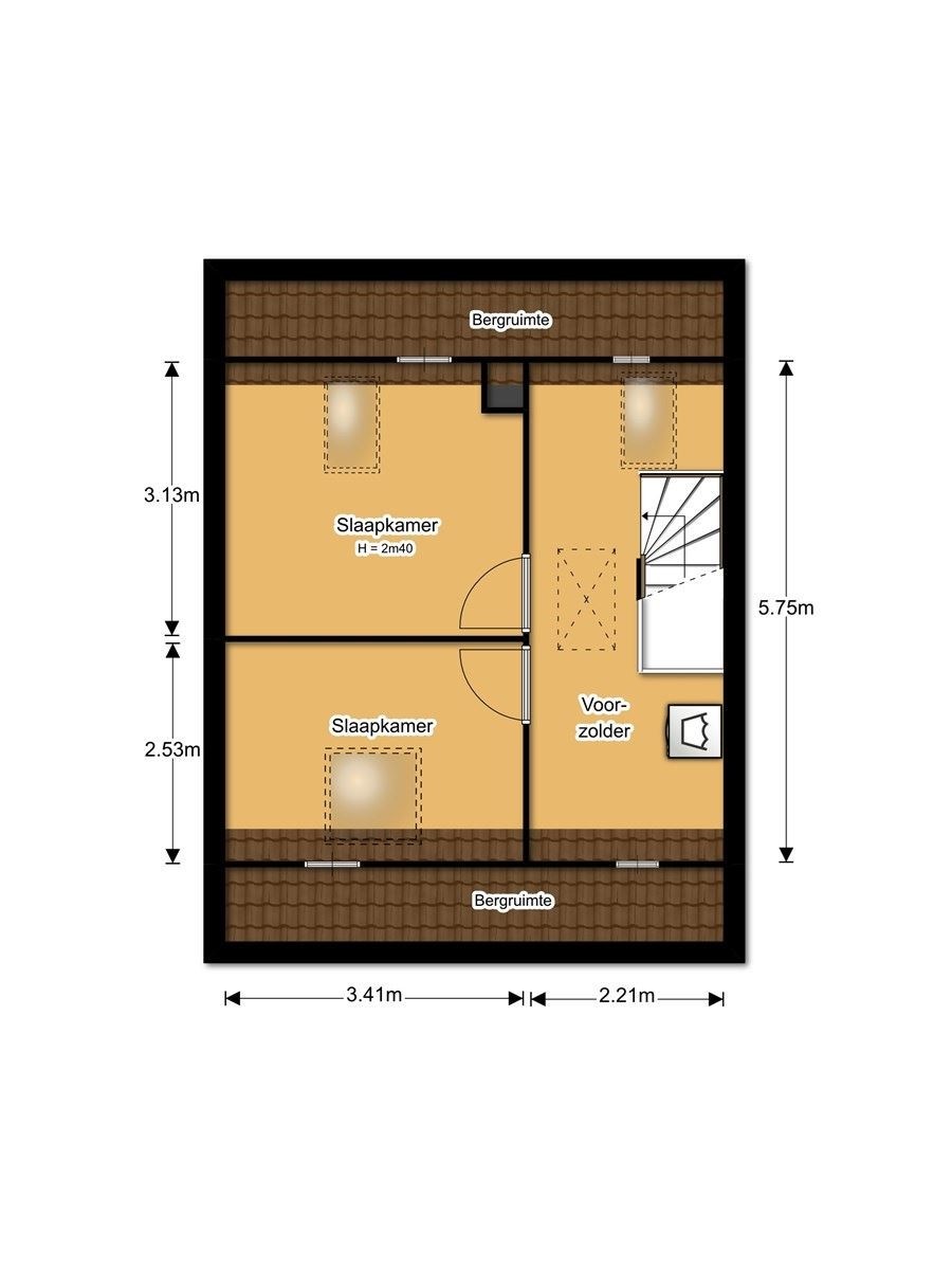 Via een vaste trap bereikt u de grote voorzolder met aansluitingspunten voor wasmachine en droger en een vlizotrap naar bergvliering. 2 Slaapkamers die beiden zijn voorzien van een groot dakraam. Deze verdieping biedt veel bergruimte achter de knieschotten.