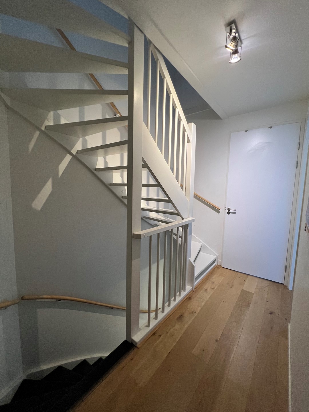 Voordeur, hal met toilet en trapopgang naar de andere twee verdiepingen.