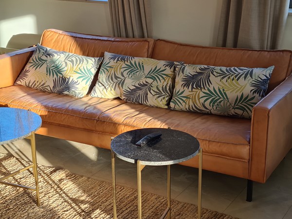 The lay-out of the apartment is very good. The Living area is big with a half open kitchen island and a seating bar. There is an indoor storage next to the kitchen, with washing machine, drier and a large freezer. All brand new built in kitchen appliances are installed. Plenty storage space is available.