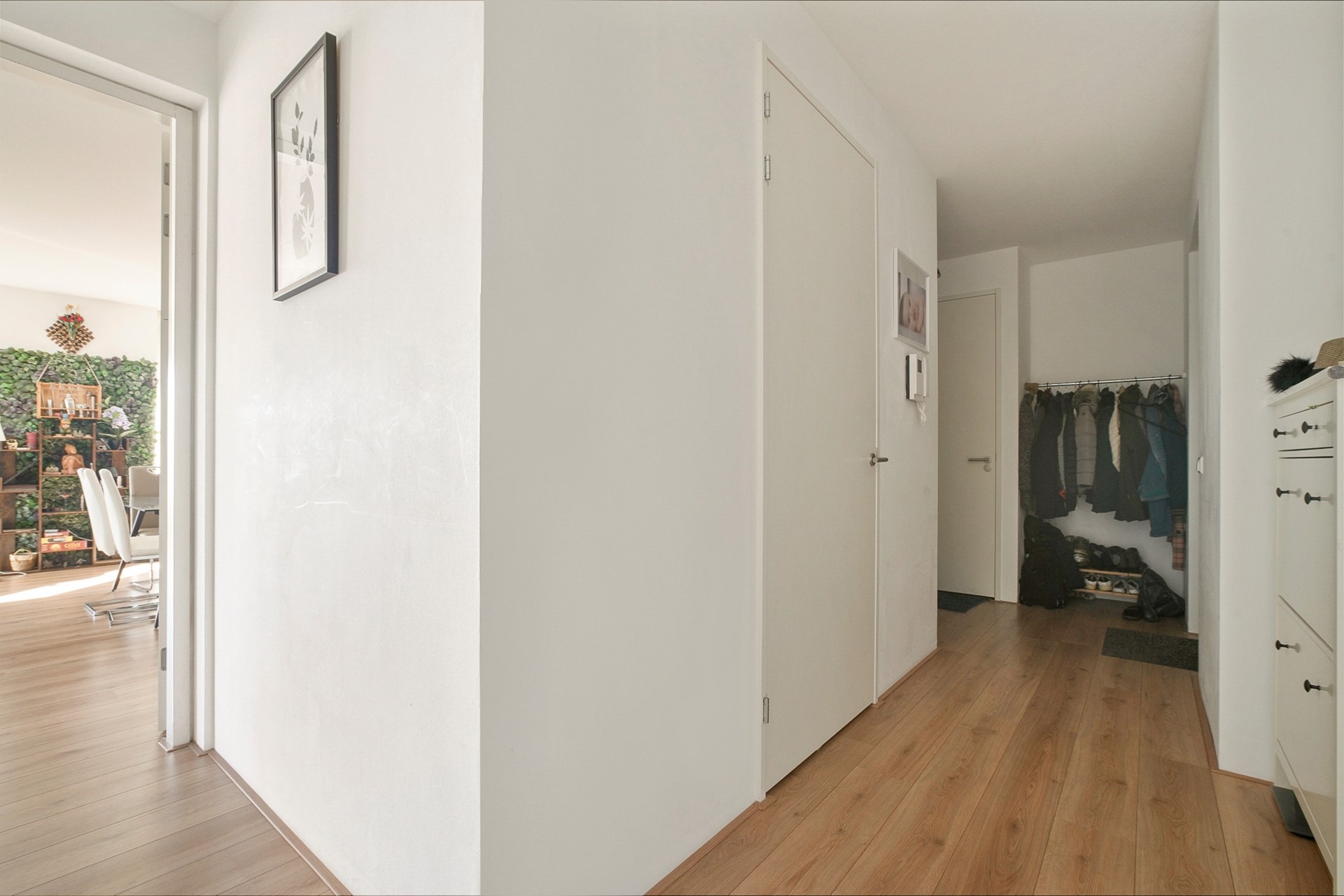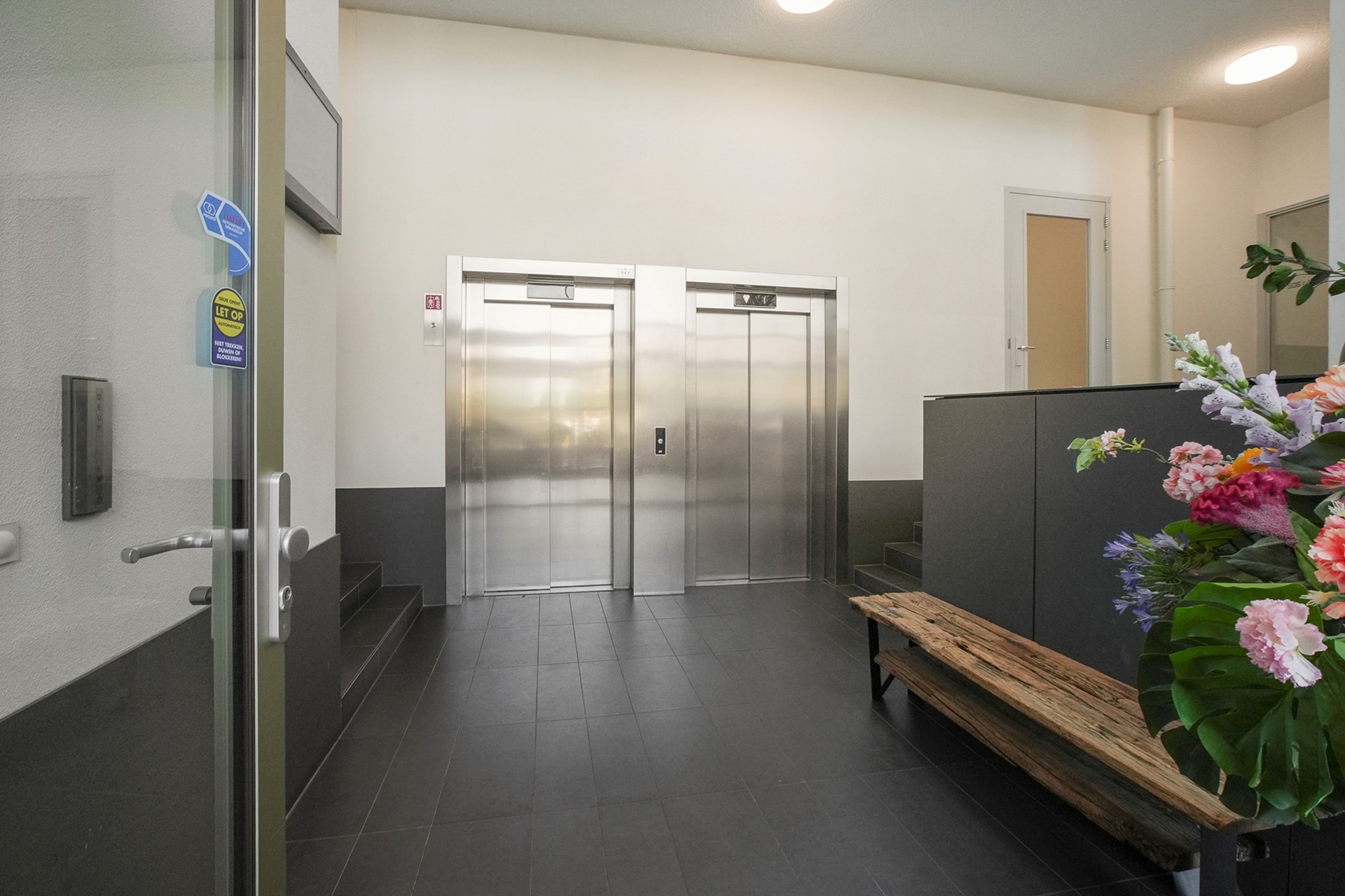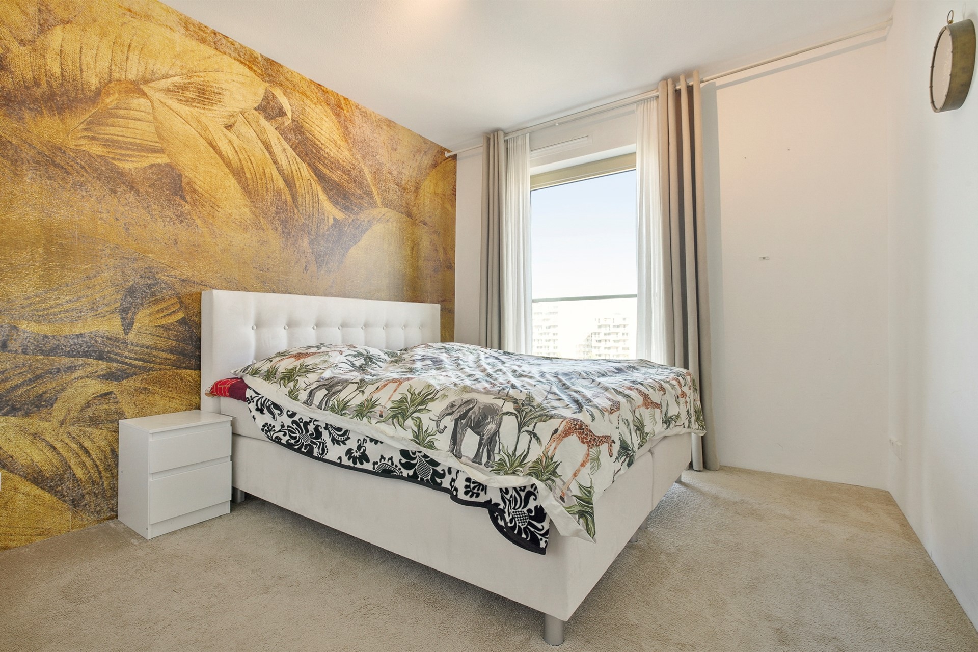 Through the spacious entrance with a double elevator, you reach the corner apartment on the fifth floor. You enter a large hallway that provides access to three spacious bedrooms, a toilet, a modern bathroom with a walk-in shower, a second toilet, and a sink, a storage room with space for a washing/drying machine, and of course, the living room. The modern living room features plenty of natural light thanks to large tilt-and-turn windows and a sliding door that opens to multiple balconies facing northeast and southeast (with a total area of approximately 19 m²). The spacious layout allows you to enjoy the beautiful views at all times. The practical kitchen is equipped with Siemens appliances: a combi-oven, an electric hob with an extractor, a large refrigerator with a freezer, and a dishwasher. Three bedrooms, a bathroom with shower and a separate toilet as well as a laundry room with washer-dryer. The entire apartment has underfloor heating, which can be adjusted per room. Mechanical ventilation is adjustable throughout the apartment. Due to its location in the complex, this corner apartment has only one adjacent unit on the same floor.