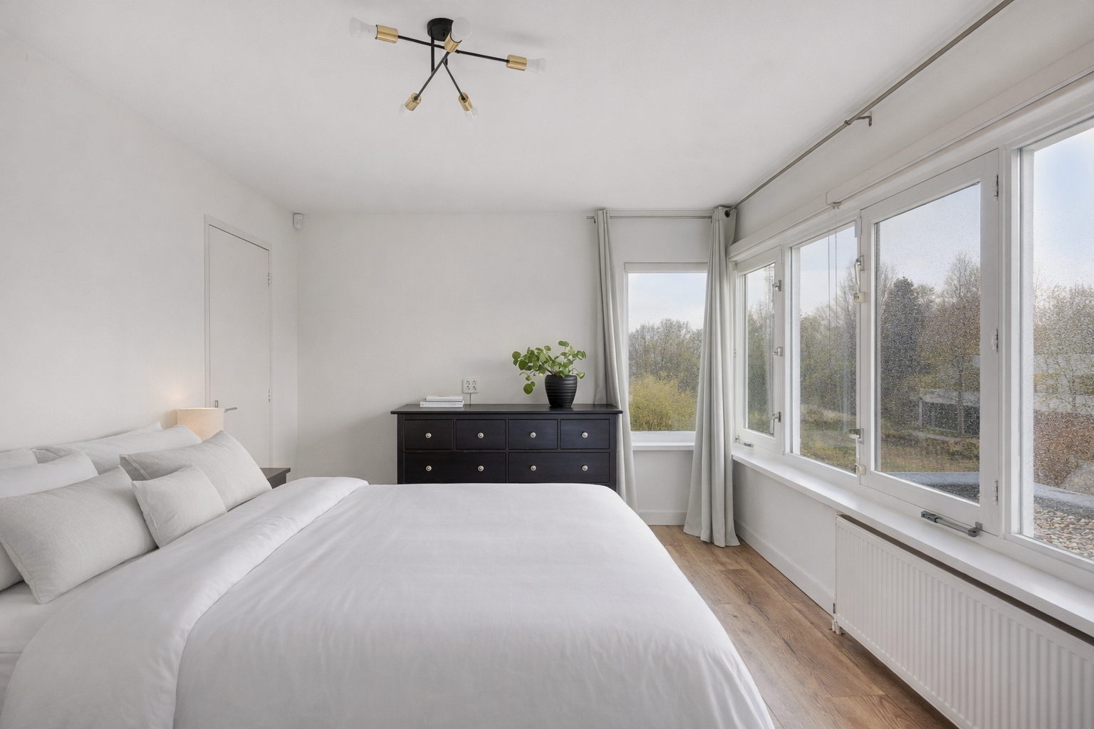 De bovenste verdieping is volledig ingericht als royale en privé master suite, die fungeert als een rustige plek binnen de woning. De slaapkamer is ruim opgezet en profiteert van veel daglicht en een aangename, serene sfeer.