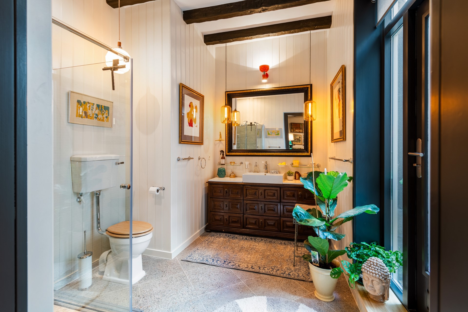 The extra large bedroom includes a luxurious American king-sized bed and very spacious en suite master bath. Authentic, solid oak floors run throughout, framed by swanky furnishings and original artwork. The bedroom includes a separate sitting area which could serve as a home office or cozy chill-out space. A patio adjoins the master bathroom providing sunlight and fresh air. Centrally located between the Keizersgracht and Prinsengracht, the apartment merges Amsterdam’s iconic historic ambiance with style and convenience.