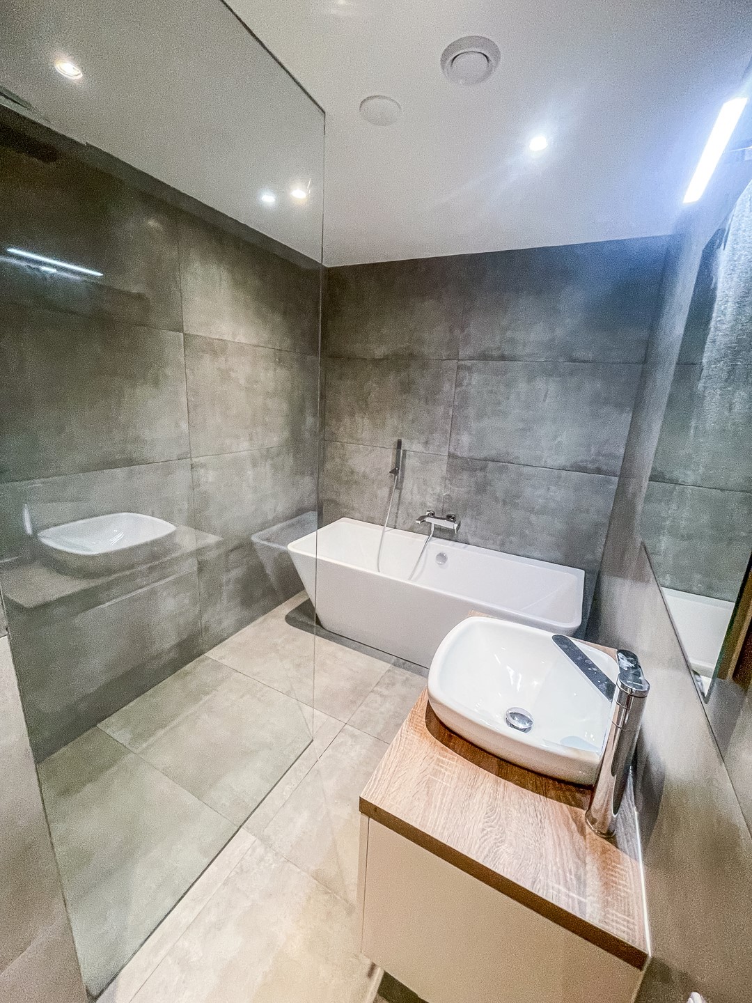 - Bathroom with bathtub, shower , sink and toilet (heated mirror)