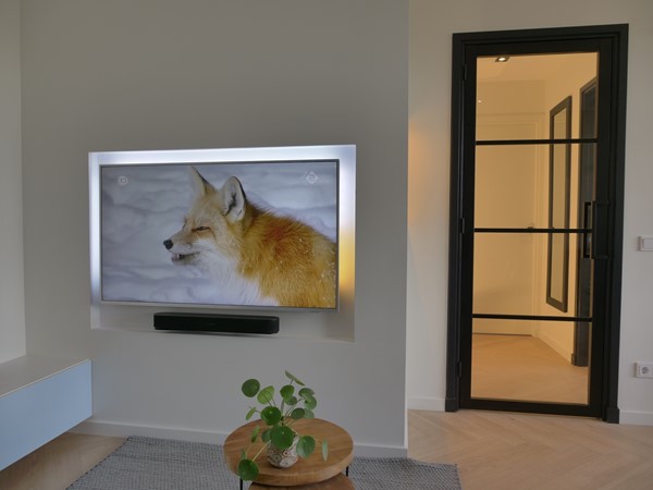 The open kitchen is equipped with built-in appliances such as an electric stove, refrigerator, separate freezer, a quooker for boiling hot water and a combi microwave oven. Through the sliding glass doors you enter the living room which is equipped with a beautiful oak dining table and a lovely lounge sofa with a 55-inch TV to relax. For the right atmosphere in the living room, you can easily set lighting and sound via your mobile.