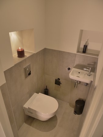 The separate toilet and storage cupboard are centrally located in the house. You will also find the washer / dryer combination and the central heating boiler in the hall. The entire apartment has underfloor heating and the ceilings have recessed spotlights. The floors have a herringbone wooden floor.
