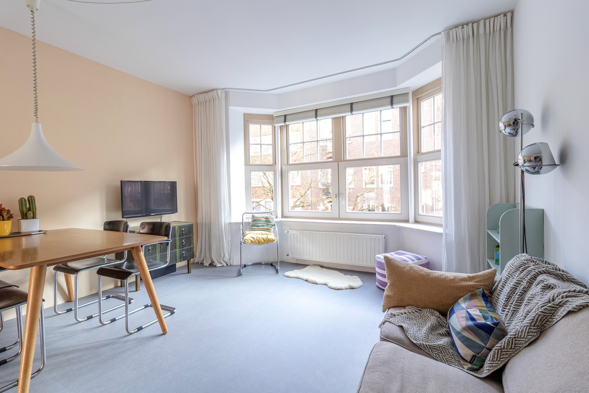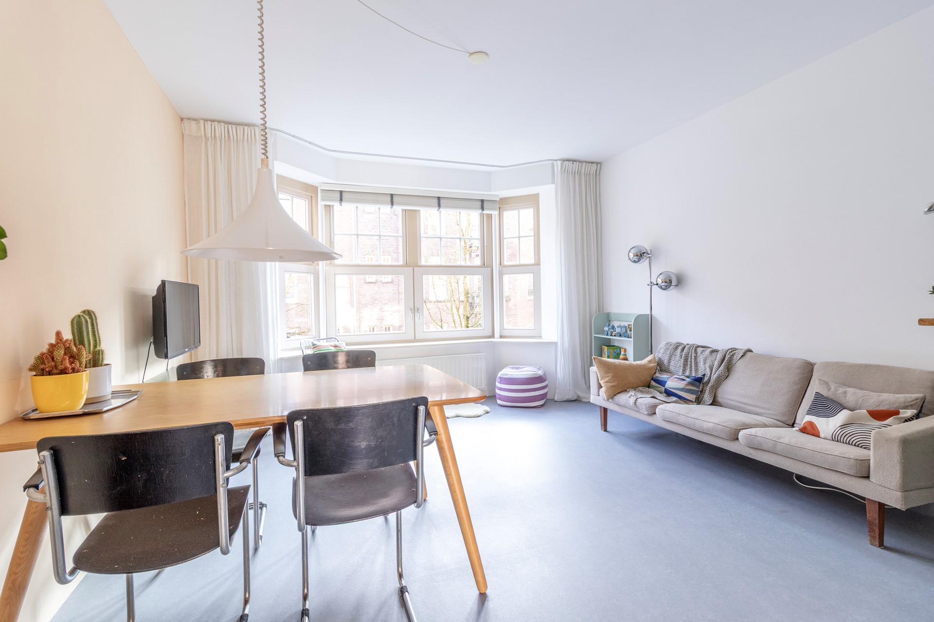 Nice and bright 2-bedroom apartment on good location in Amsterdam East. This furnished apartment is perfect for a small family with 1 or 2 children, or for a couple who are working from home. The layout is very smart, with a lot of functional space. Next to the kitchen is the sunny balcony with nice greenery in front.