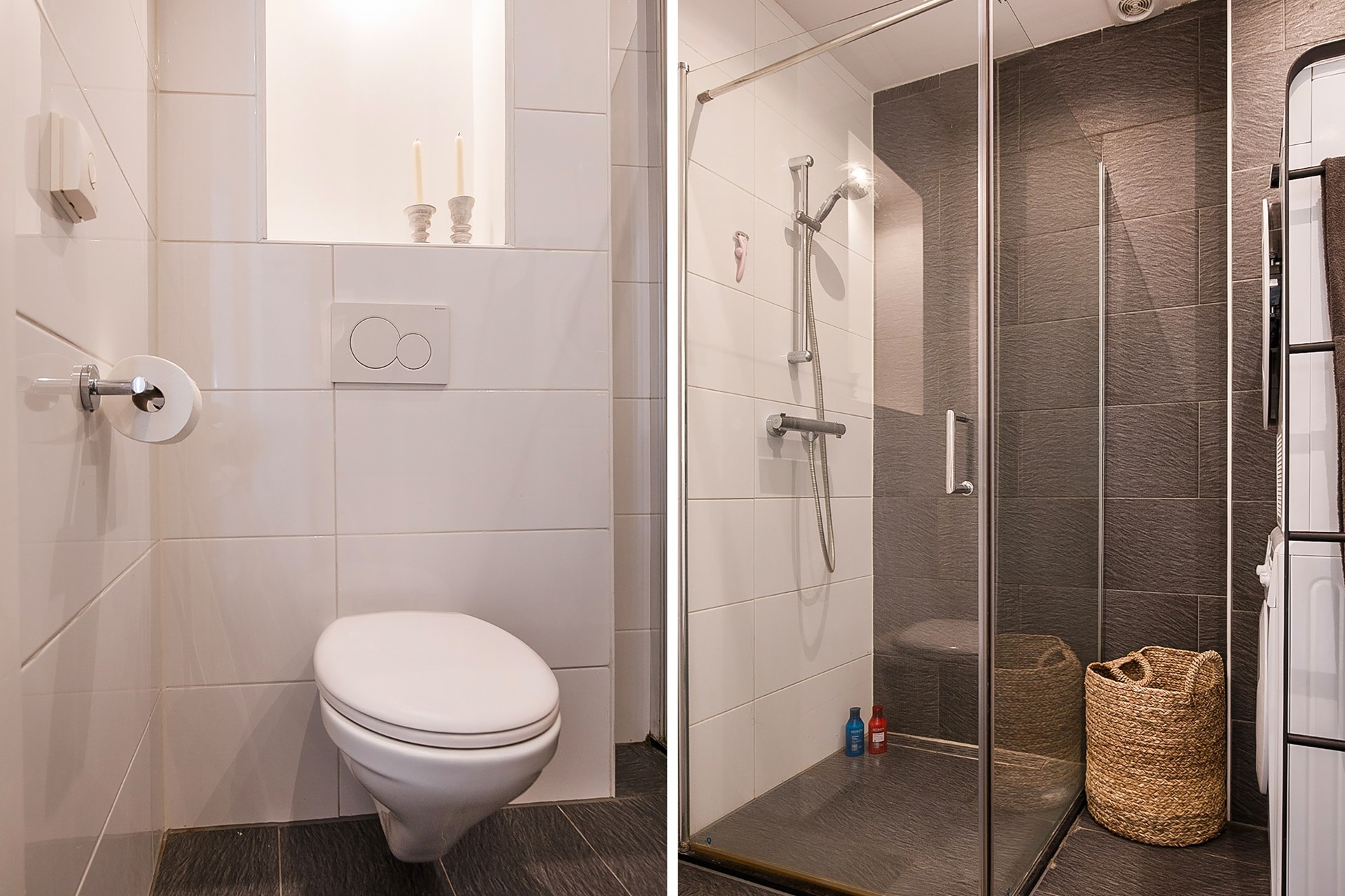 Aan de achterzijde ligt de sfeervolle woonkamer met grote ramen die zorgen voor veel lichtinval. De open keuken is in 2024 volledig vernieuwd en voorzien van moderne inbouwapparatuur, waaronder een inductiekookplaat, oven en vaatwasser. Dankzij de eigentijdse afwerking en praktische indeling is dit een keuken die niet alleen functioneel is, maar ook uitnodigt om te koken en gezellig samen te komen. Aan de voorzijde bevinden zich de slaapkamers: een ruime masterbedroom met voldoende plek voor een groot bed en kastruimte, en een tweede kamer die uitstekend geschikt is als logeer- of studeerkamer. De badkamer is modern en compleet uitgevoerd, met een douche, toilet, wastafelmeubel en aansluitingen voor wasmachine en droger. De vloerverwarming en inbouwspots geven de ruimte extra comfort en een verzorgde uitstraling.