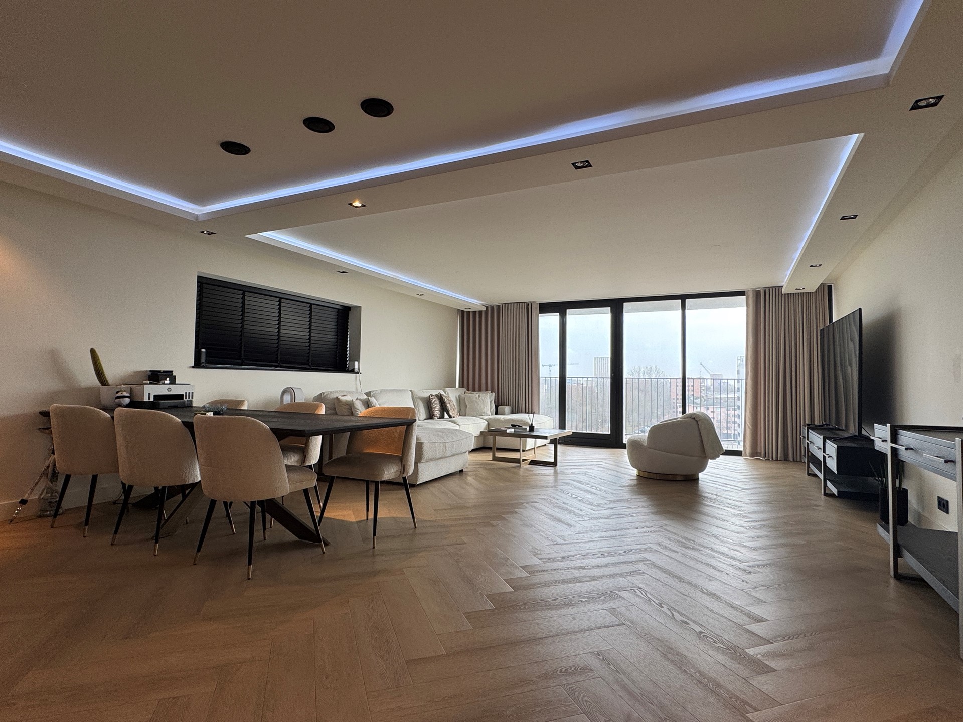 Het appartement heeft een luxe uitstraling en is voorzien van comfortabele vloerverwarming door het gehele appartement.