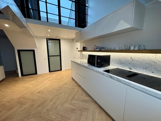 • Open keuken volledig uitgerust met o.a. koelkast/vriezer, vaatwasser, oven/magnetron, Quooker-kraan en inductiekookplaat met geïntegreerde afzuiging